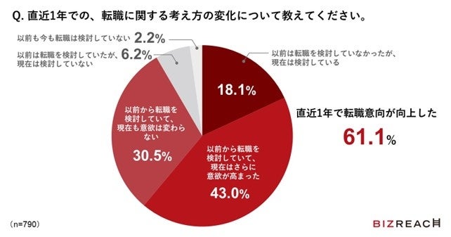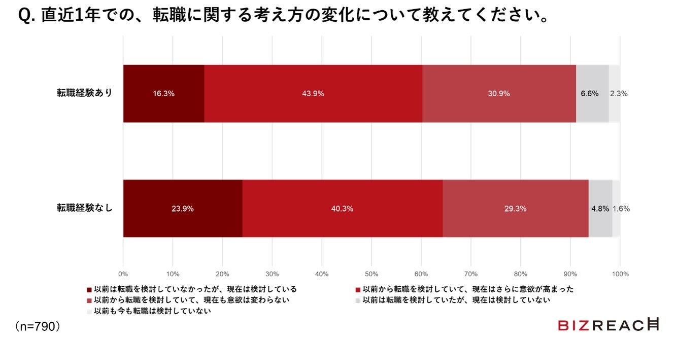 即戦力人材6割が「直近1年で転職意欲向上」転職未経験者2割が「以前は検討していなかったが、現在は転職を検討」