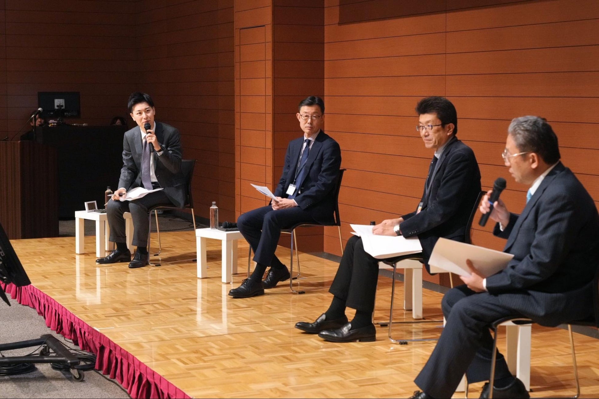 パネルディスカッションでは、「理想の法務の未来像~経営と深く関わる法務として今、すべきこと~」をテーマに株式会社MTG 執行役員 法務・ガバナンス本部長 工藤 俊和氏、積水ハウス株式会社 法務部 国際・企画法務室長 西川 朋宏 氏、シスメックス株式会社 総務・法務本部 法務部長 山崎 晋氏(山崎氏の肩書は2024年10月時点のもの)といった、関西を代表する企業の法務部門を統括されている皆様にご登壇いただき、モデレーターは株式会社LegalOn Technologies 法務コンテンツ企画開発/弁護士 軸丸 厳が務めました。