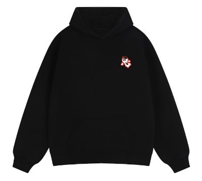 日常使いしやすい黒のフーディに、フロント・バックともに、WGGのアイコンであるゴーストとJR九