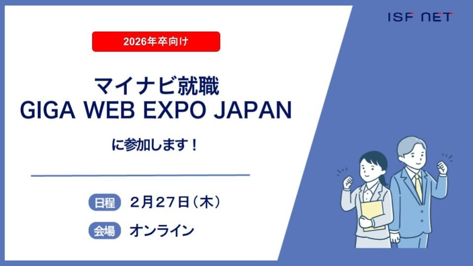 株式会社アイエスエフネット(本社:東京都港区/代表取締役:渡邉幸義、以下アイエスエフネット)は、2025年2月27(木)に、オンラインで開催される、2026年卒業予定の学生向け「マイナビ就職GIGA WEB EXPO JAPAN」に参加いたします。