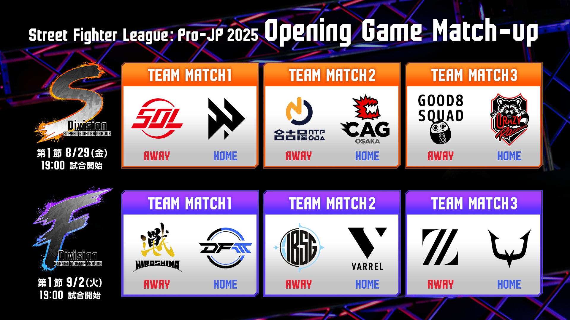 開幕戦以降の日程および本大会に関する最新情報は、『ストリートファイターリーグ: Pro-JP』公式HP(https://sf.esports.capcom.com/sfl/)およびCAPCOM eSports公式X(https://X.com/CAPCOM_eSports/)をご確認ください。