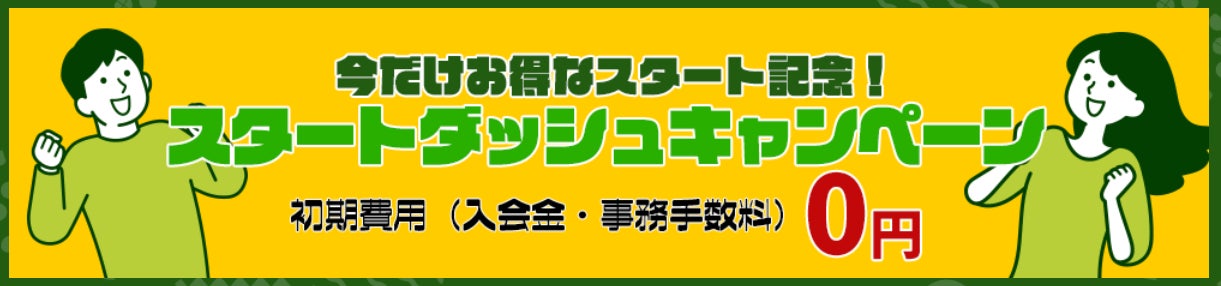 スタートダッシュキャンペーンとして、今なら初期費用(入会金・事務手数料)3,300円が、無料に!