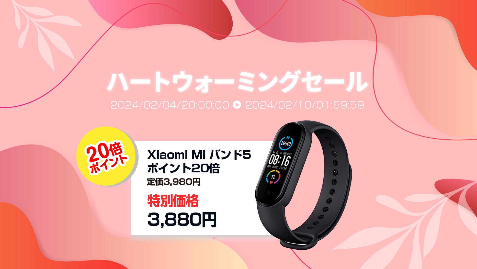 楽天「Show !t」でポイントがザクザクたまる!シャオミMiバンド5を3,880円のお得なセール価格で販売しポイント20倍プレゼント、さらに2月4日(日)20時開始、楽天お買い物マラソンに参加
