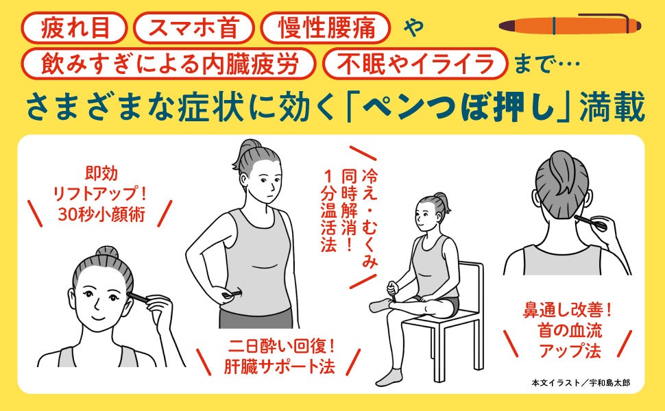 本書では、このような課題を解決するため、鍼灸師が実際に活用している技法を「たった30秒」「その場で症状が改善」「続けやすい」ペンツボ押しメソッドをまとめて解説。