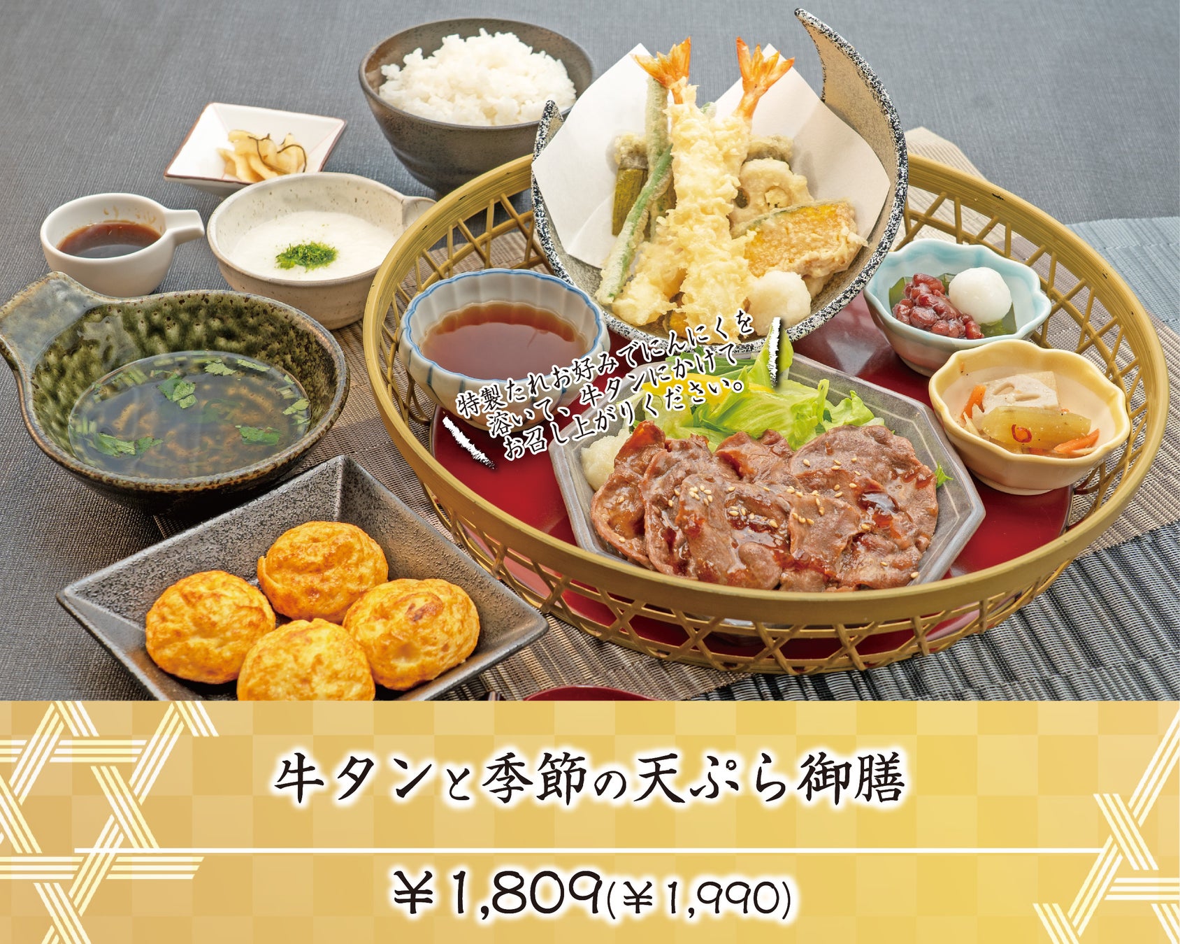 ●牛タンと季節の天ぷら御膳 1,809円(税込み1,990円)