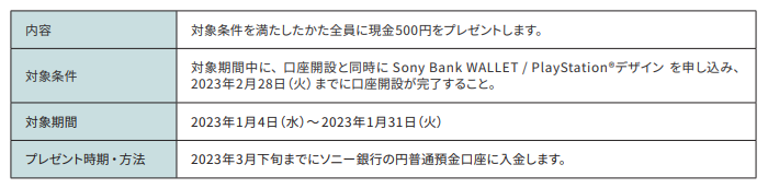 「Sony Bank WALLET / PlayStation®デザイン限定 口座開設で今ならもれなく500円プレゼント」キャンペーン実施のお知らせ