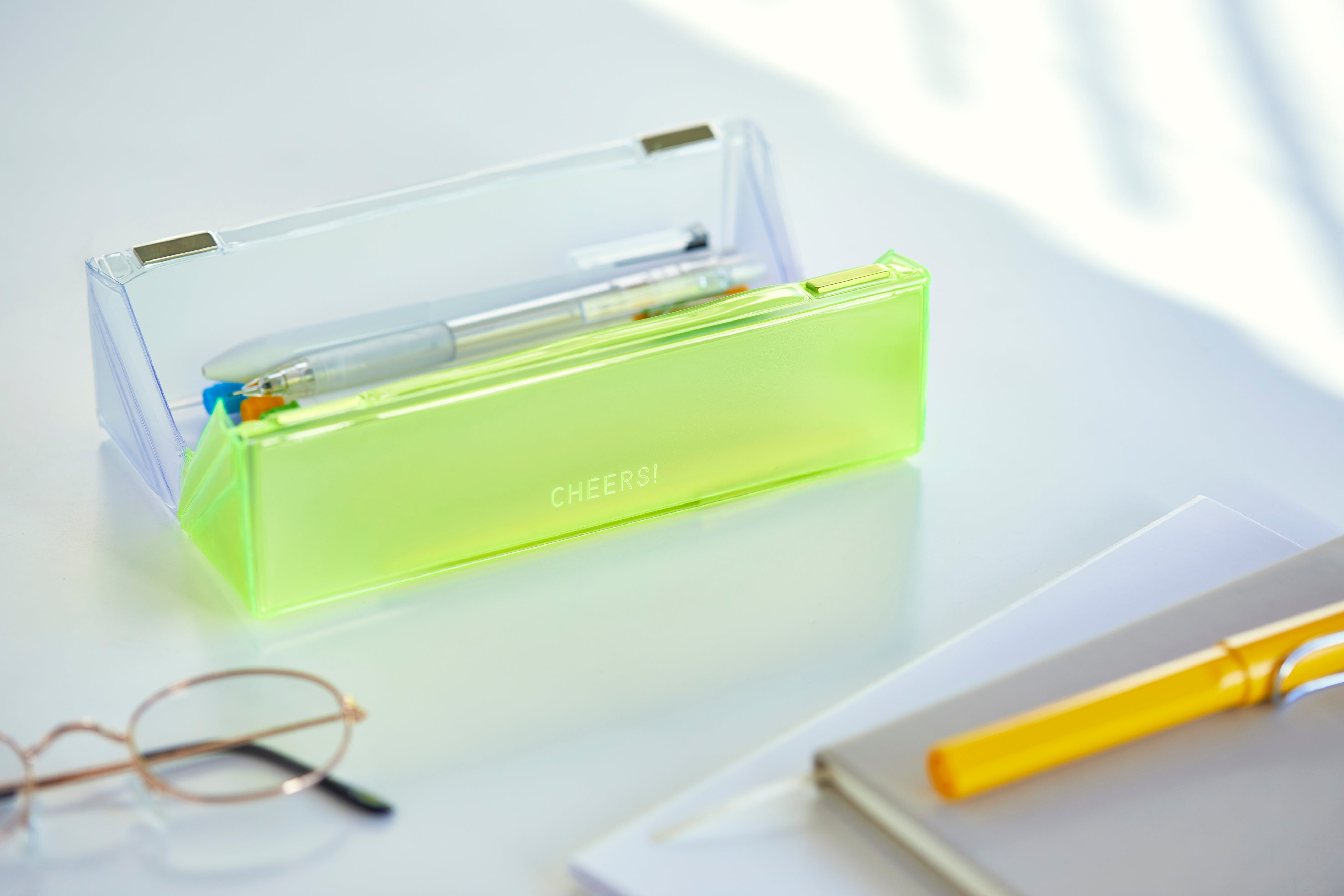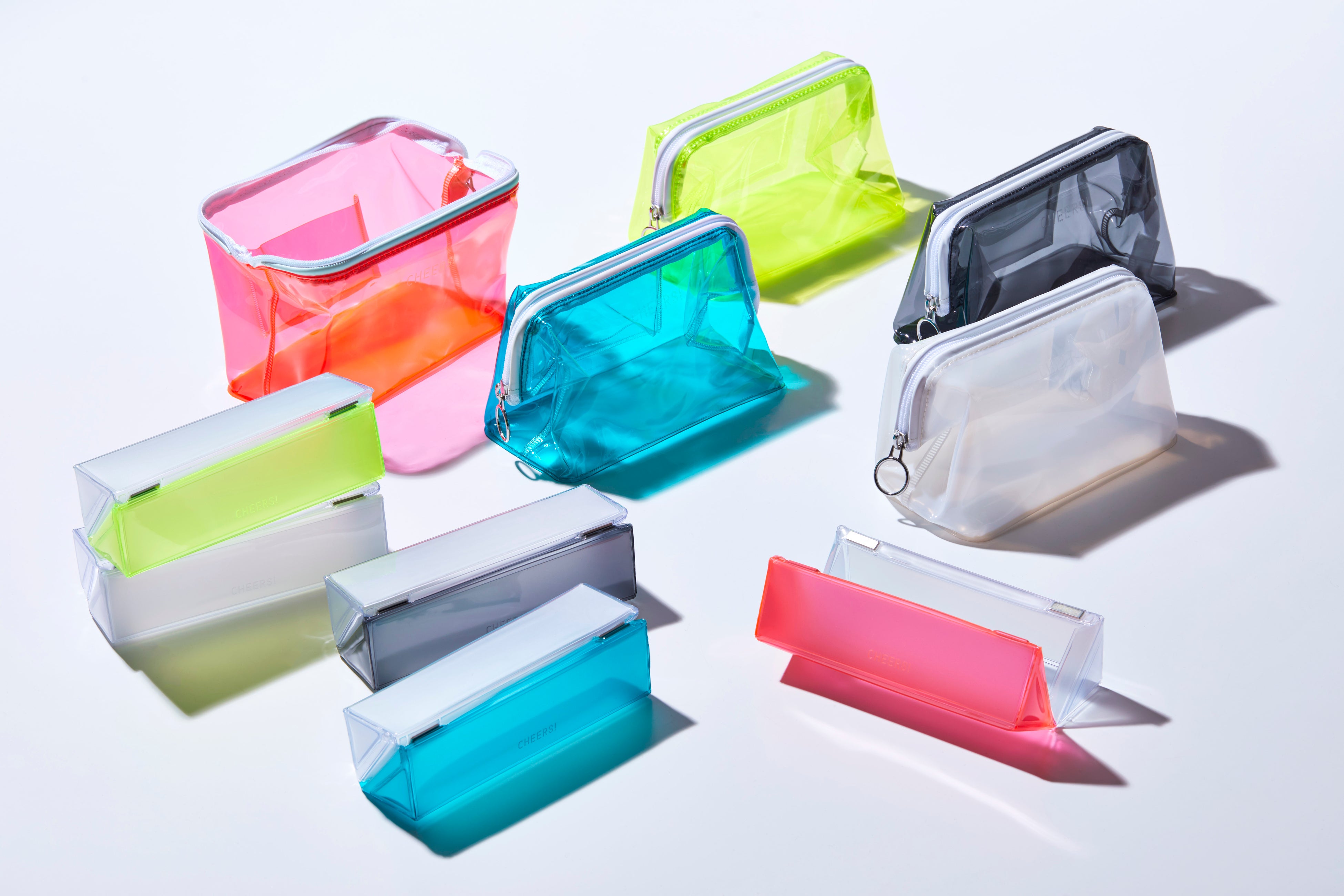 ポップなカラーリングと透明感が楽しめるPVC素材のステーショナリーシリーズに新商品が追加!『CHEERS!(チアーズ)』第3弾 発売 「スクエアペンケース」と「ワイヤーポーチ」の2製品を発売