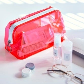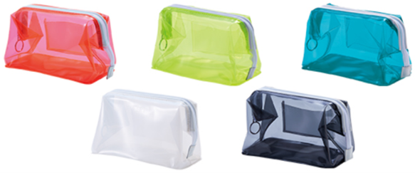 透明なPVC素材のため、どこに何が入っているかが見やすく、中身のペンや化粧品を“見せる”ことも楽しめるポーチです。