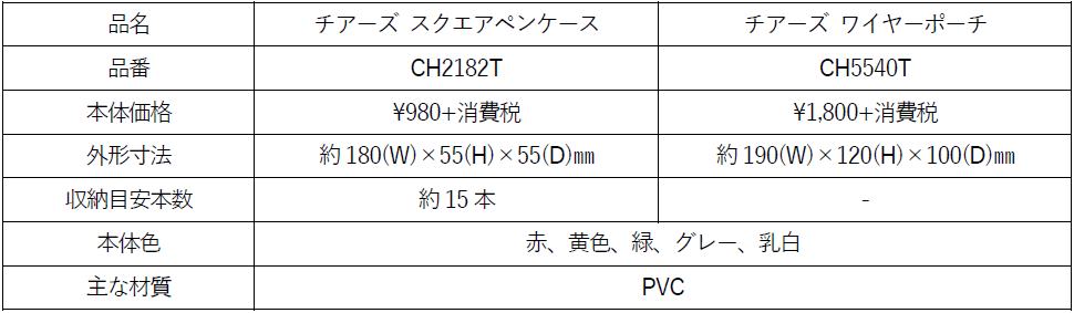 株式会社キングジム(本社:東京都千代田区 代表取締役社長:宮本 彰)は、ステーショナリーシリーズ『CHEERS!(チアーズ)』の第3弾として「スクエアペンケース」「ワイヤーポーチ」を2022年9月30日(金)より発売します。初年度販売目標数量は新製品合計で4万5千個です。