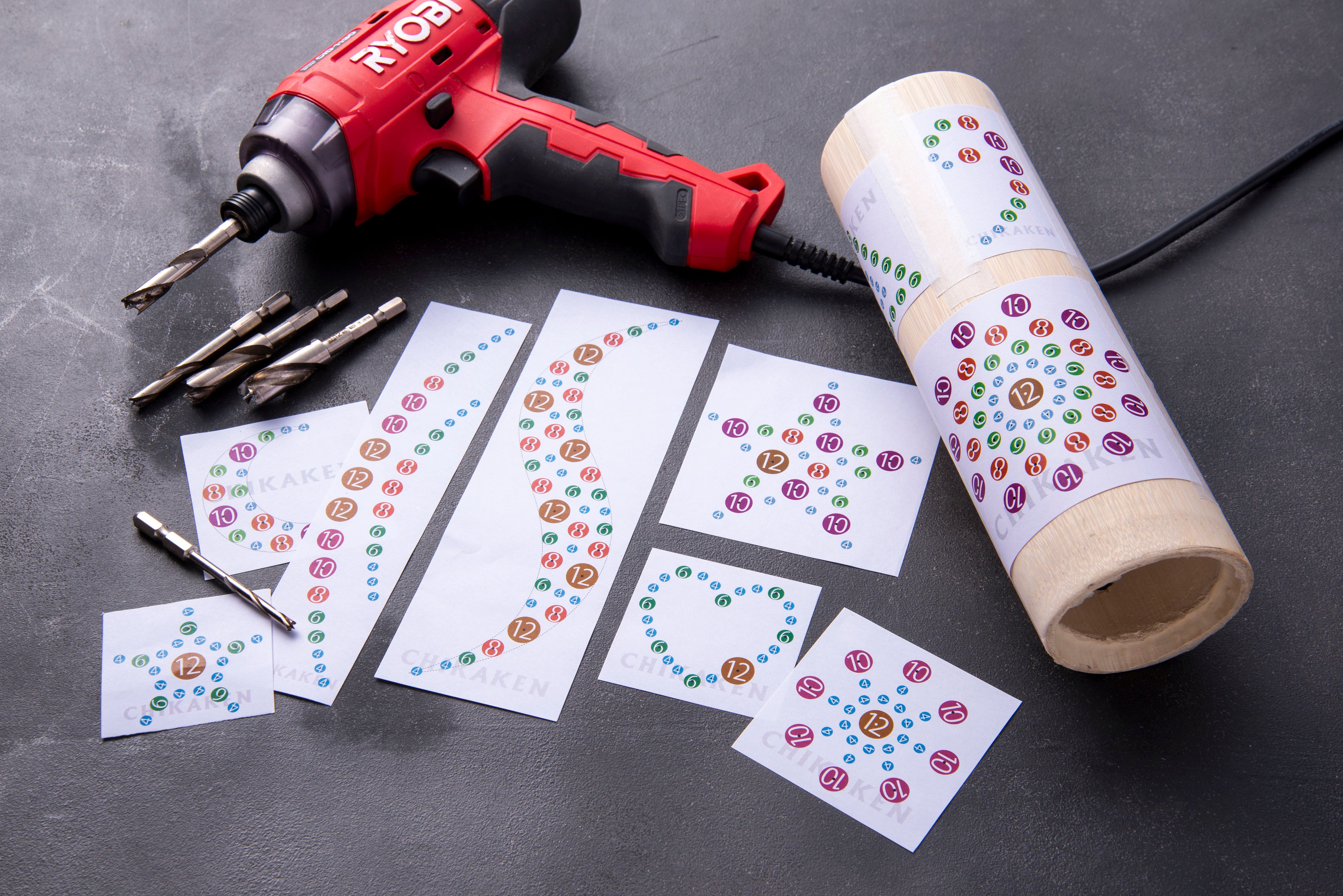 約 50 種類の型紙からデザインを選び、ドリルで穴