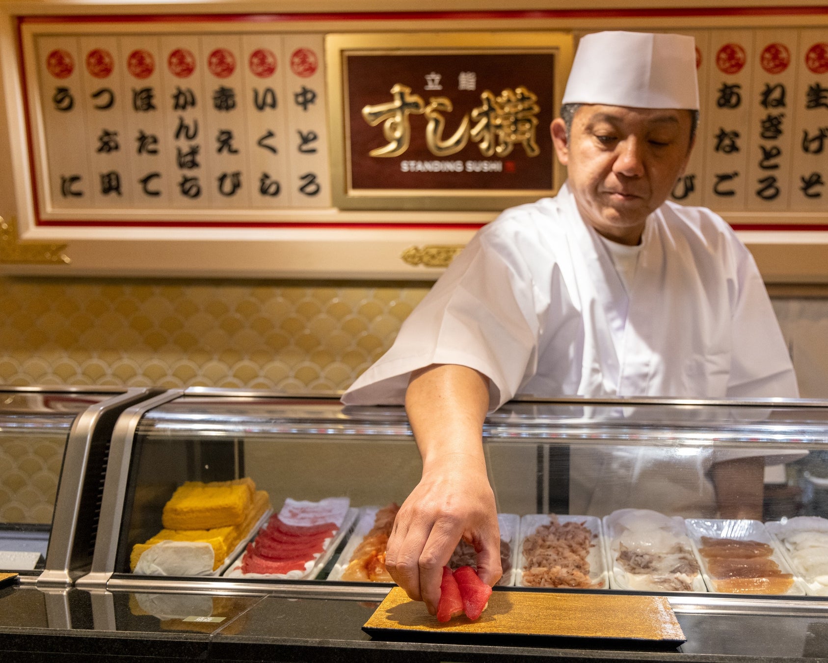 当社は2018年から屋台感覚で気軽ながらも職人が握る本格江戸前寿司の立ち寿司業態(立ち寿司横丁、東京立ち寿司、立鮨 すし横)を運営しております。2024年には新たに2店舗(新宿エキナカ、東京駅ヤエチカ)を出店しました。平日ランチタイム限定の立ち食い100円引きや、日時問わずハイボール&サワーは立ち飲み半額など、“サクッと立ち利用”のお客様がお得にご利用いただける独自のサービスがテレビや雑誌などで注目を浴びています。