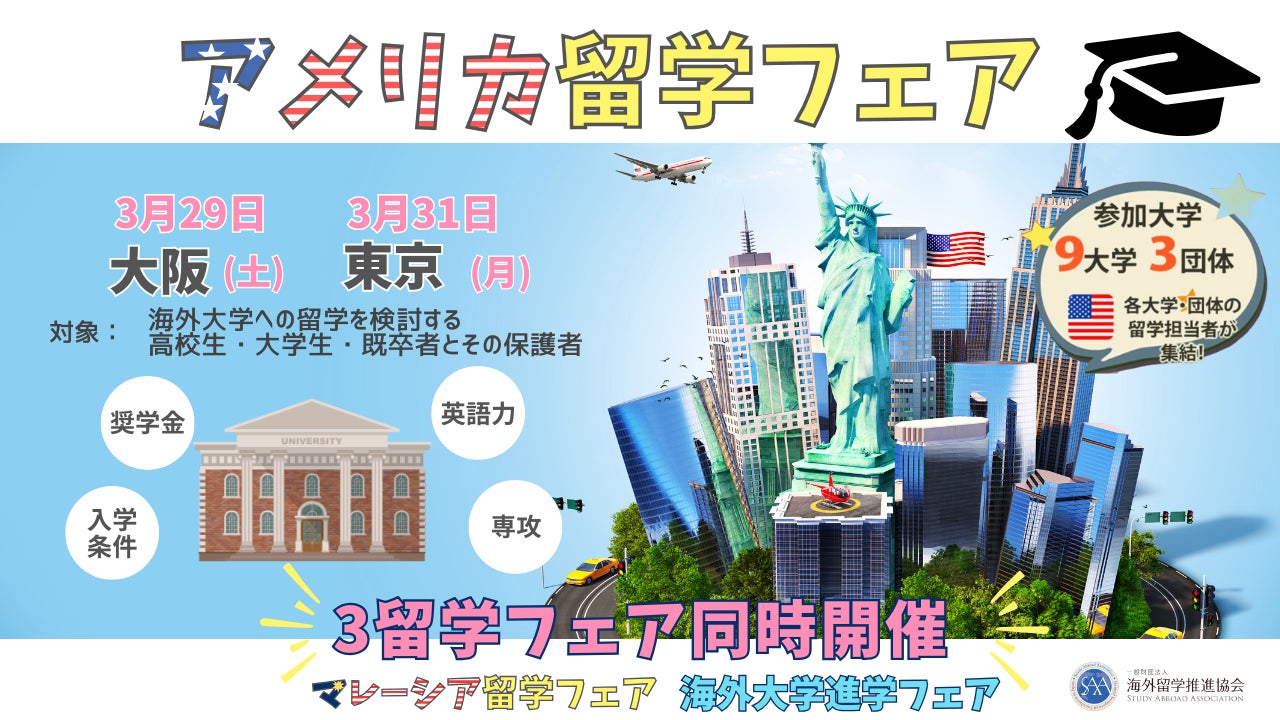 Zenken株式会社(本社:東京都港区、代表取締役社長:林 順之亮、以下 Zenken)と業務委託契約を結んでいる一般財団法人 海外留学推進協会は、「アメリカ留学フェア2025春」を3月29日に大阪、31日に東京で開催いたします。