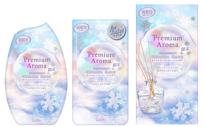 エステー株式会社は、消臭芳香剤「消臭力」のワンランク上の上質な香りをお届けする「消臭力 Premium Aroma(プレミアムアロマ)」シリーズから、初雪にときめいたあの日のように心をふわりと躍らせる〈トゥインクルスノー〉の香りを、数量限定品として新発売します。
