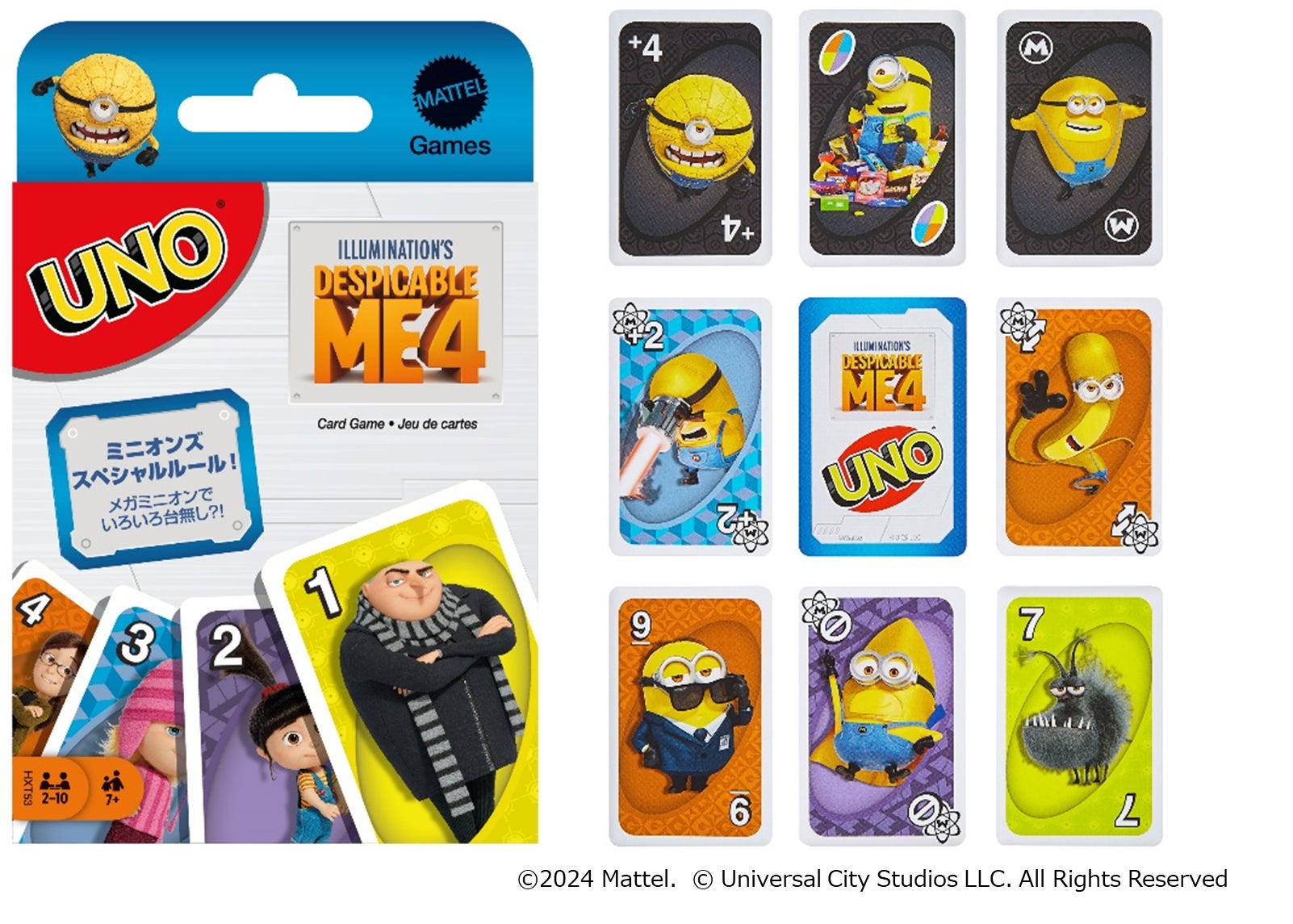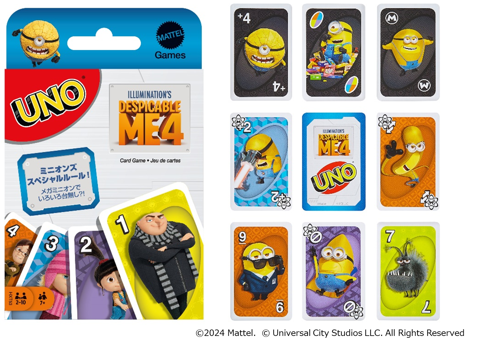 世界大手の玩具メーカー、米国マテル社の日本法人マテル・インターナショナル株式会社(本社:東京都千代田区、代表取締役社長:石井 恵三)は、人気カードゲームUNO(以下、ウノ)シリーズから、7月19日(金)に公開する映画『怪盗グルーのミニオン超変身』のキャラクターやシーンにインスパイアされた絵柄が描かれた、特別仕様の「ウノ ミニオンズ」を6月22日(土)より発売いたします。