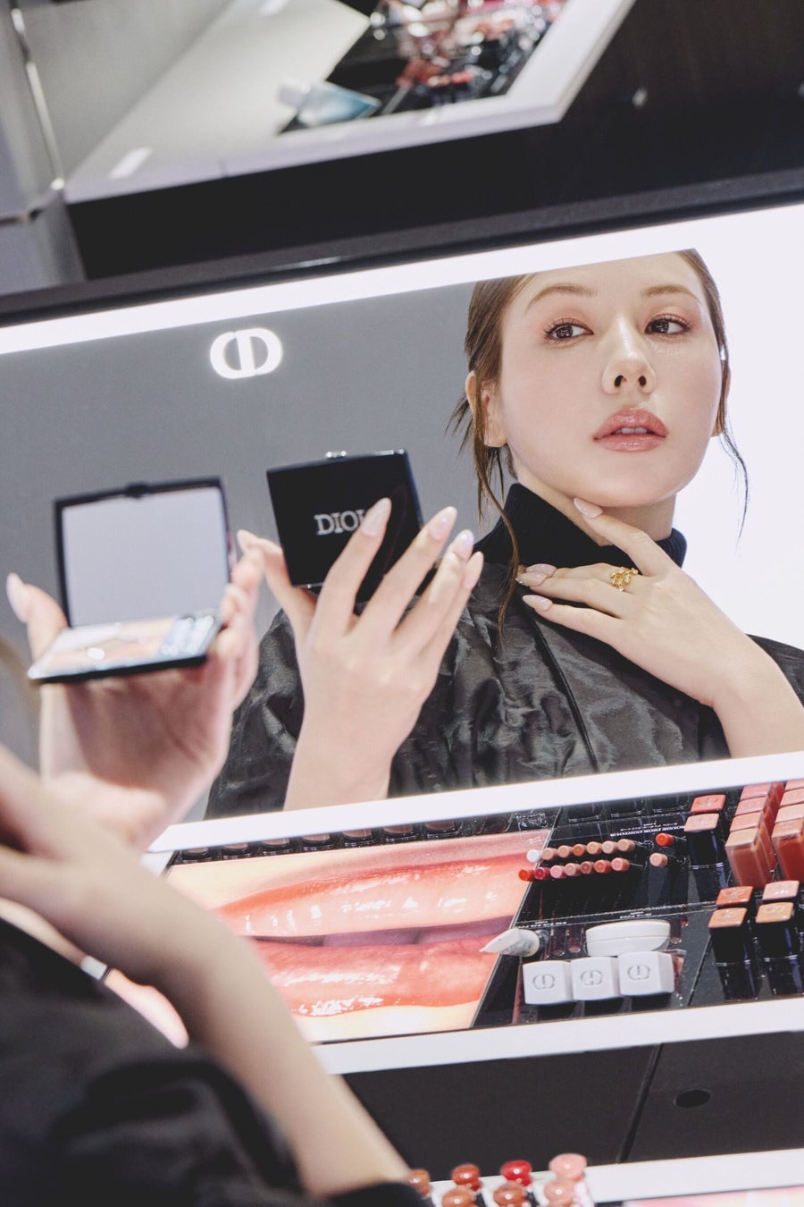 躍動的なファッションショーのランウェイやバックステージを映し出すスクリーンや、シーズン毎に最新のトータルルックを提案するコーナーに囲まれたメイクアップエリアでは、メイクアップ クリエイティブ&イメージ ディレクターをつとめるピーター・フィリップスが創り出した、ベースメイクからアイシャドウ、リップメイクまでディオール メイクアップの卓越した専門性をお楽しみいただけます。