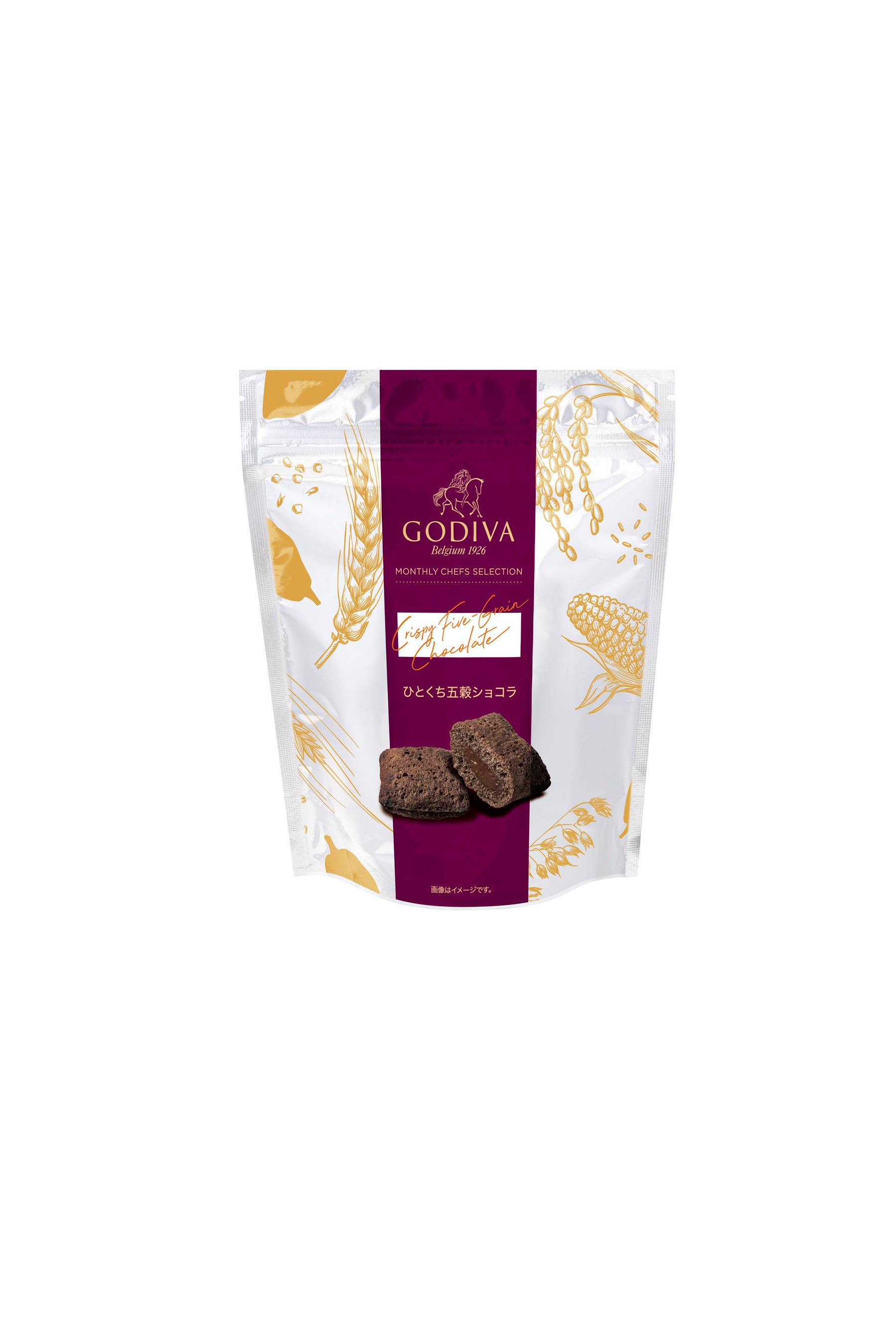 「ゴディバ マンスリー シェフズ セレクション」の新商品は、ひと口で濃厚なチョコレートを楽しめる、軽やかな食感が特徴の「ひとくち五穀ショコラ」を発売します。