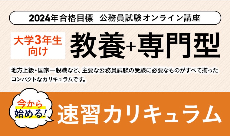 【公務員試験】2024年合格目標 <今から始める!>教養+専門型ワイド・スタンダード対策速習カリキュラム・都庁速習カリキュラム、国家総合職(教養区分)対策カリキュラムリリース!