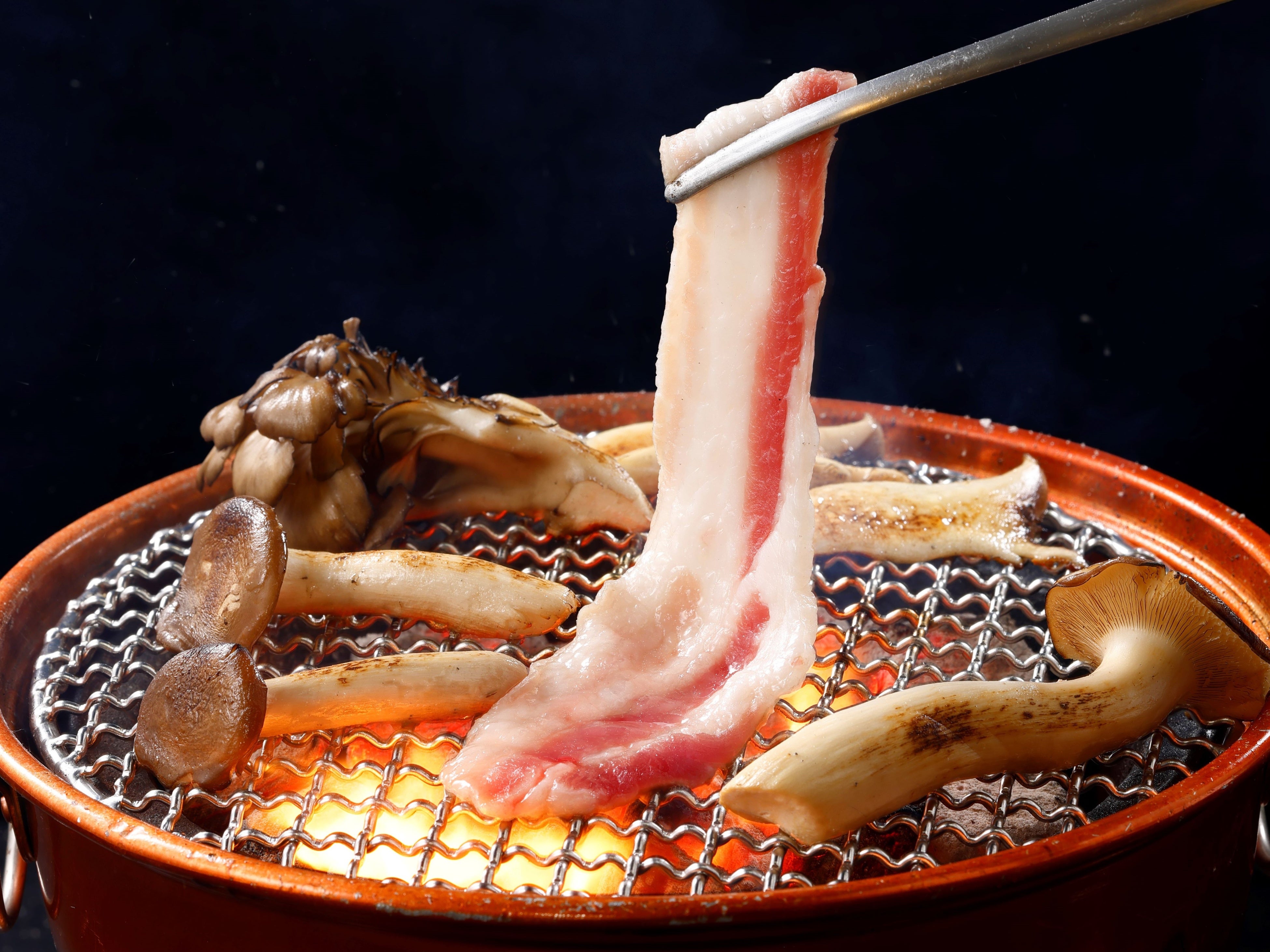 味・香り・食感の異なる個性豊かな3種の国産きのこ。食べごたえ抜群の『極旨しめじ(ぶなクイーン)』、香ばしい香りの『まいたけ』、ほんのりとした甘みの『エリンギ』は、焼くことで味わいが引き立ち、『イベリコ豚』からしたたる脂の甘みと絶妙に調和。きのこに含まれる「グルタミン酸」と「グアニル酸」、イベリコ豚に含まれる「イノシン酸」が合わさることで、三大うま味成分が相乗効果をもたらします。