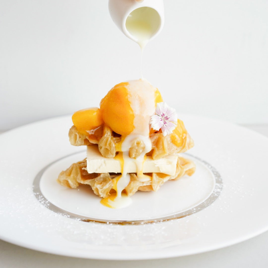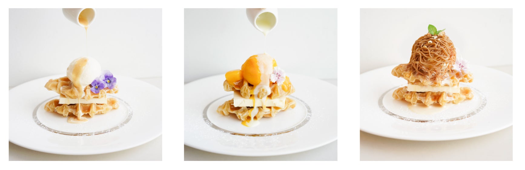 リッチクロッフル-マンゴーチーズケーキ-(写真中央) | マンゴーアイスにマンゴー果肉と夏を感じられる一品。マンゴーとチーズケーキの意外にも相性抜群な組み合わせはクセになること間違いなし。 | ¥1,580 |