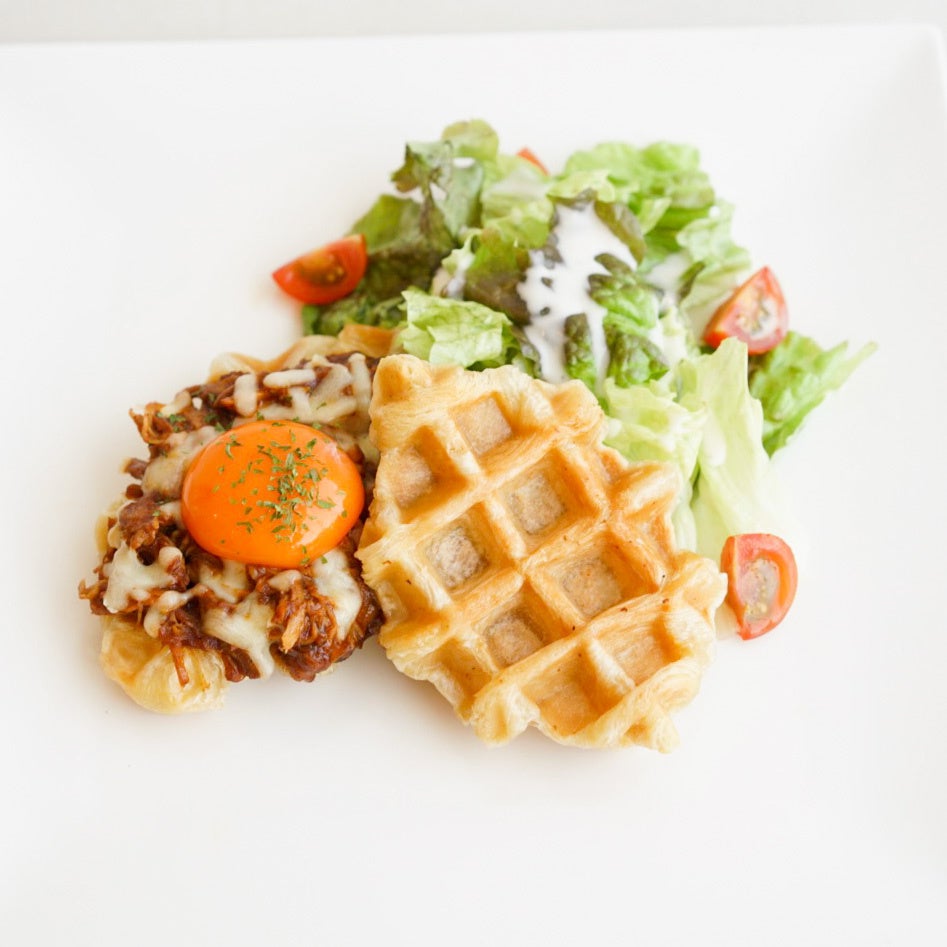 ベーコンスクランブルエッグ(写真左上) | 王道のベーコンと卵の組み合わせ。ふわふわのスクランブルエッグに香ばしいベーコンの絶妙なハーモニー。モーニングにもランチにもぴったり。 | ¥1,180 |