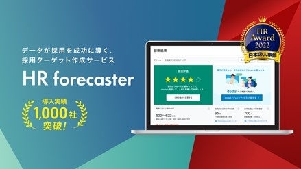 転職サービス「doda」などを運営するパーソルキャリア株式会社が提供する、100万件の転職統計データを活用した求人要件作成支援サービス「HR forecaster(エイチアール フォーキャスター)」は日本の人事部「HRアワード2022」において、プロフェッショナル部門 人材採用・雇用部門で入賞しましたので、お知らせいたします。