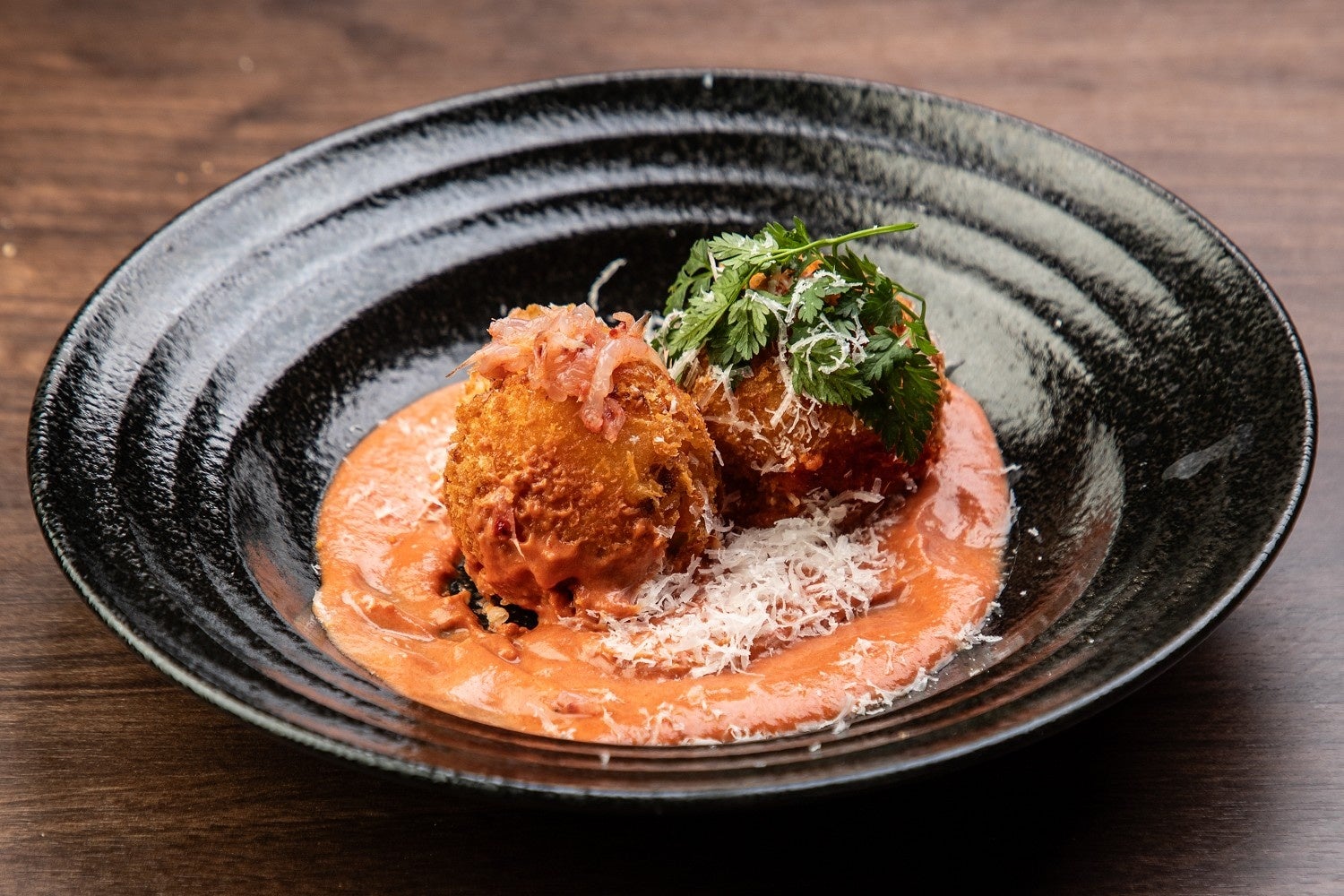 桜海老の風味と筍の食感を楽しむ、イタリアの「ライスコロッケ」