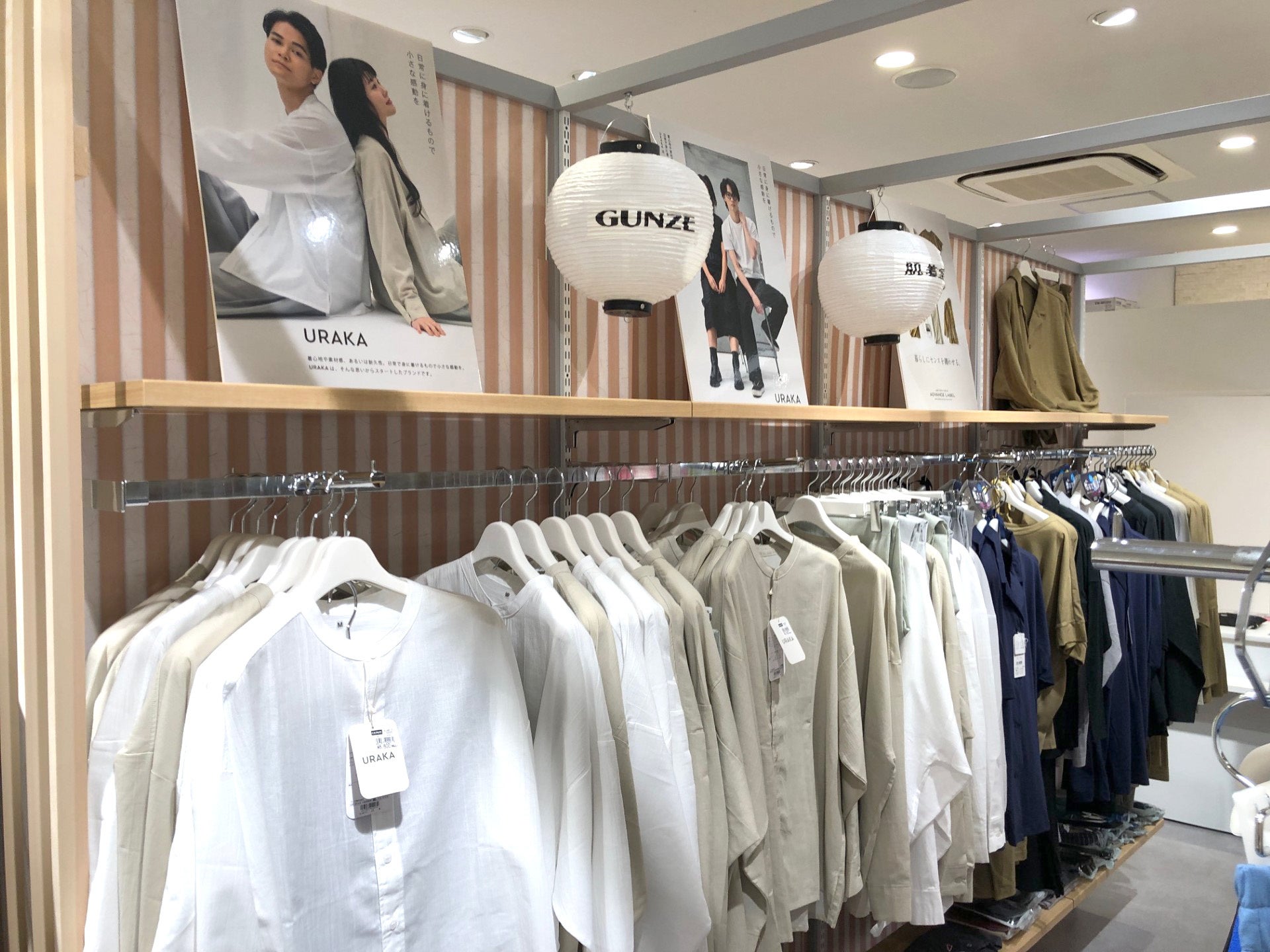「GUNZE川崎アゼリア店」は、かっこよさも快適なはき心地も兼ね備えた「BODY WILD(ボディワイルド)」のボクサーパンツや、肌へのやさしさを考えた「KIREILABO(キレイラボ)」の完全無縫製インナーなどの人気商品をはじめ、暑い日におすすめのシーズンインナーウェアなど、お客さまのニーズに合わせた商品を取り揃えています。さらに、「衣類へのストレスを解消し、身に付けるもので小さな感動をお届けする」ことをコンセプトに今年の 6月にデビューした話題のライフスタイルウェアブランド「URAKA(うらか)」や、おうちでのリラックスタイムからちょっとしたお出かけにも活躍するアウターライクなウェアもラインアップ。