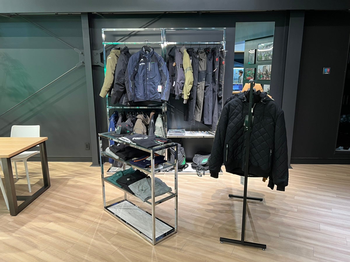 また、アパレルやグッズはアイランドに展示。実際に手に取って確かめやすいレイアウトとしています。