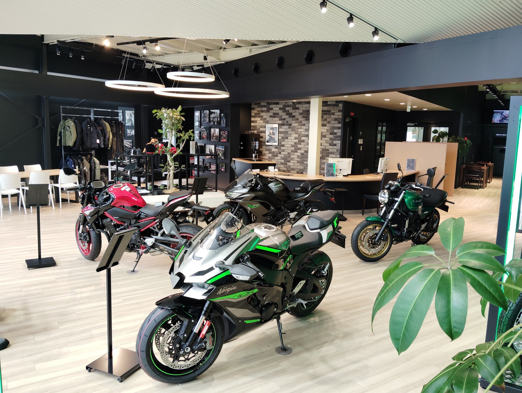 白を基調に明るい店内へリニューアルした「カワサキ プラザ仙台六丁の目」は、装いも新たに生まれかわりました。経験豊かなコンシェルジュとテクニシャンが、皆様のモーターサイクルライフをお手伝いいたします。