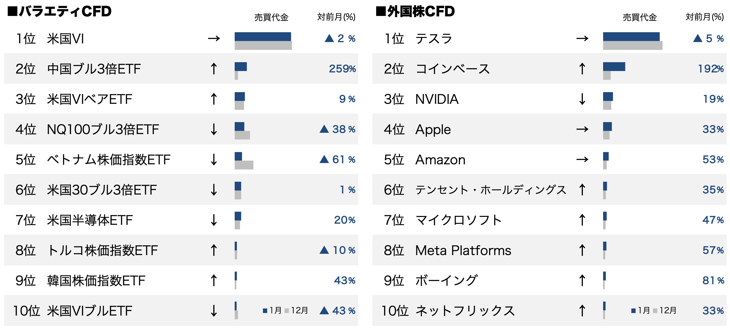 ~総合首位は米国NQ100!バラエティCFDでは米国VI、外国株CFDではテスラが首位に~