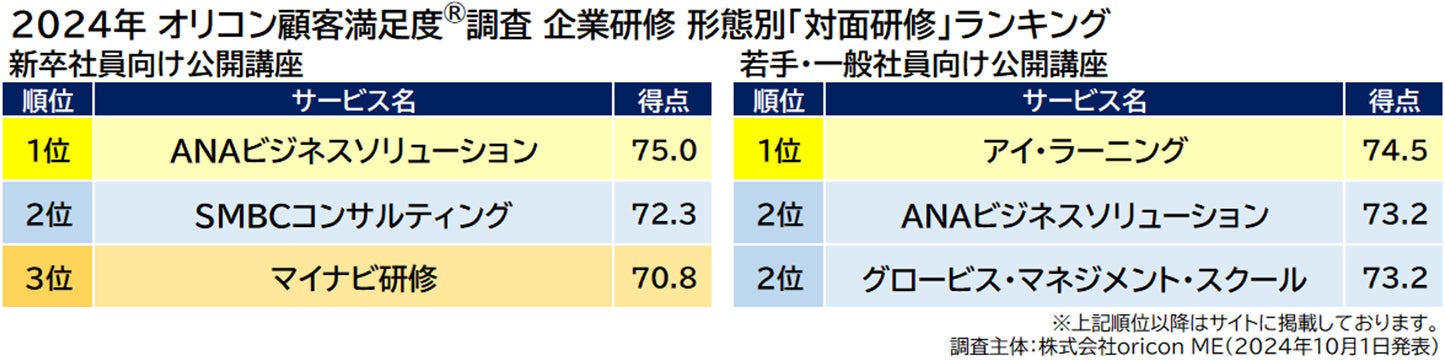 『企業研修 新卒社員向け公開講座』【ANAビジネスソリューション】が〈初発表〉「対面研修」で1位『企業研修 若手・一般社員向け公開講座』【ANAビジネスソリューション】が5年連続の総合1位