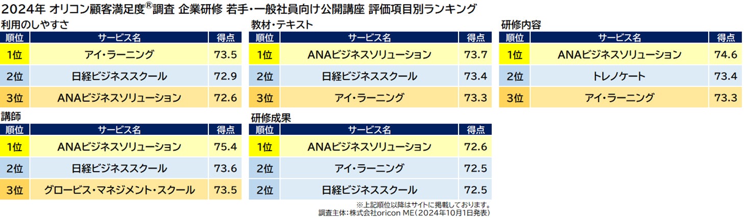 ■『若手・一般社員向け』は【ANAビジネスソリューション】が5年連続で総合1位