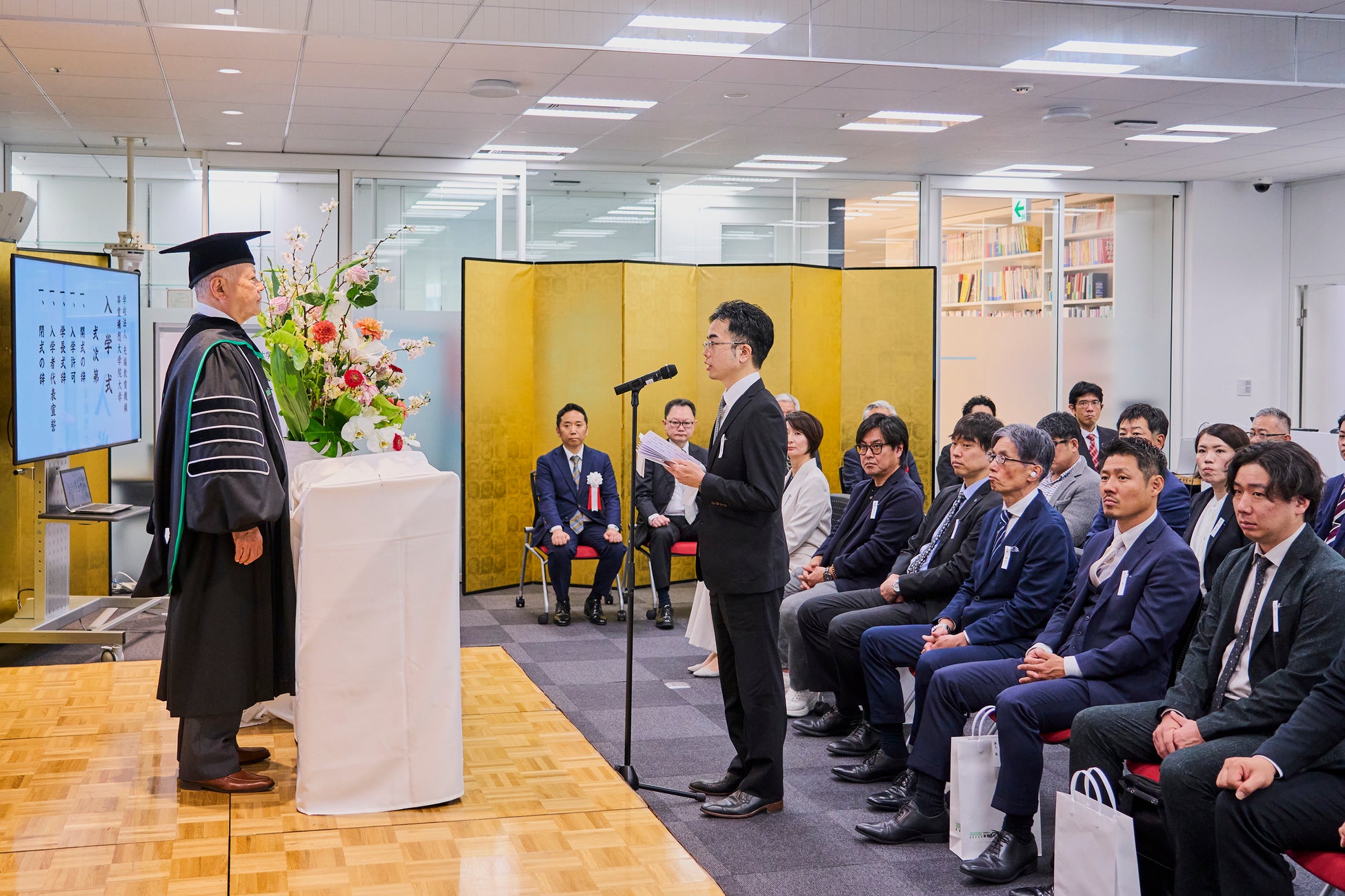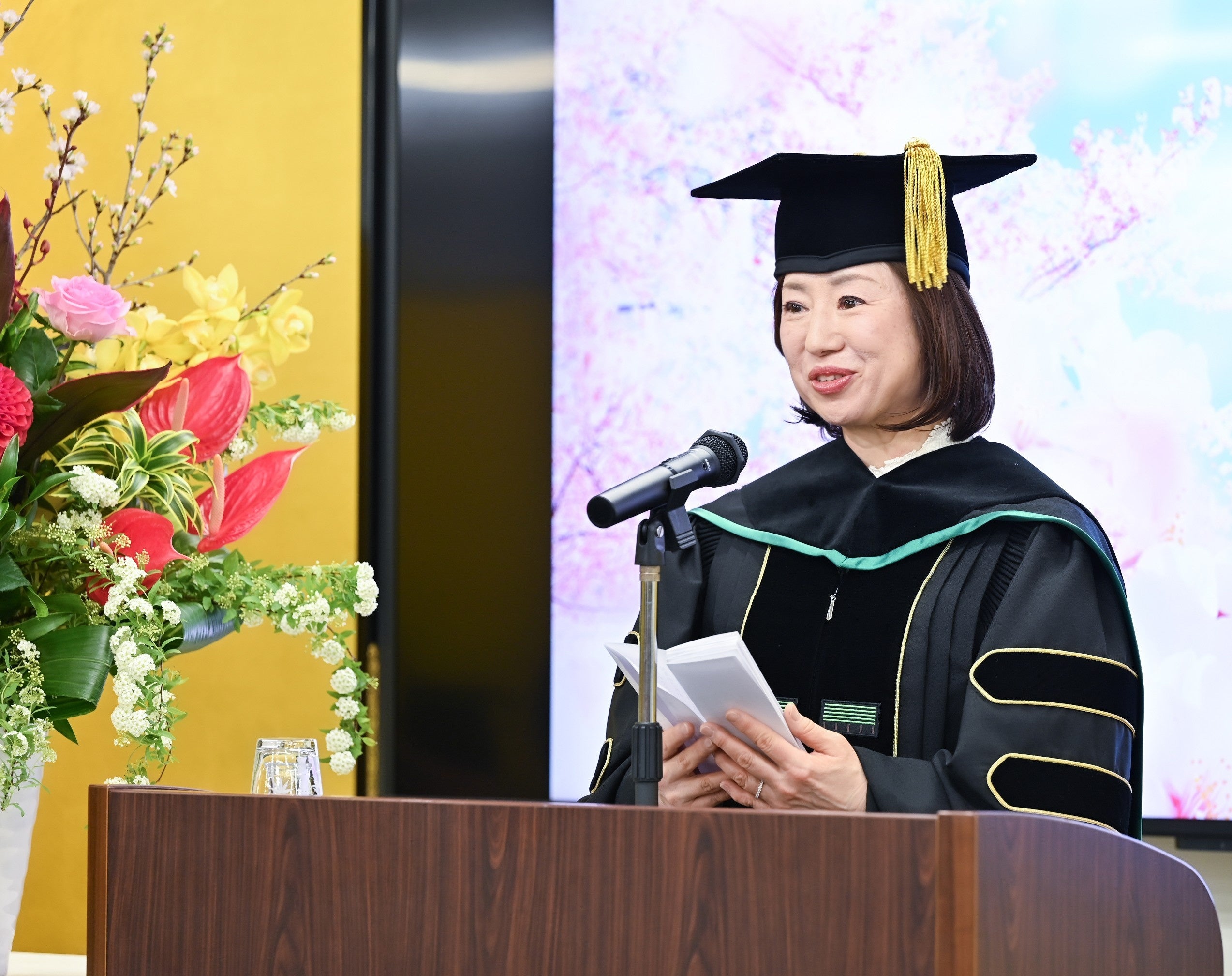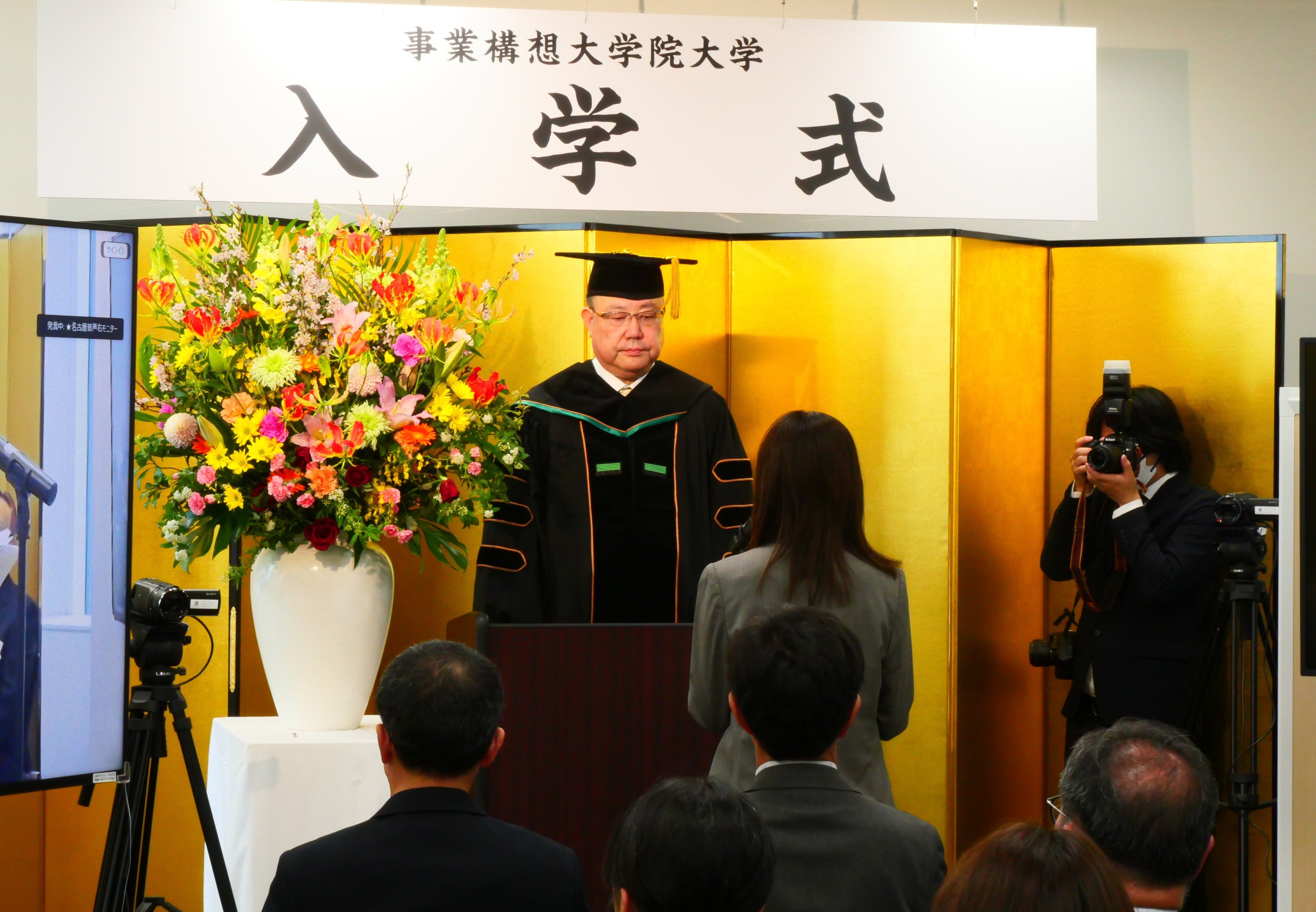 清々しい春の佳き日に、事業構想大学院大学にご入学された皆様に心よりお祝い申し上げます。全国各地・多様な分野から志を持つ皆様が集い、新たな一歩を踏み出されることを大変心強く感じております。本学のカリキュラムでは、東英弥理事長の著書である『事業構想原論』に基づき、「発想・構想・計画・伝達・実践」の体系的な学びを通じて、社会課題の解決に資する構想力を養います。豊かなネットワークと実践的な学修環境を活かしながら、理想を現実へと引き寄せる挑戦を重ねてください。