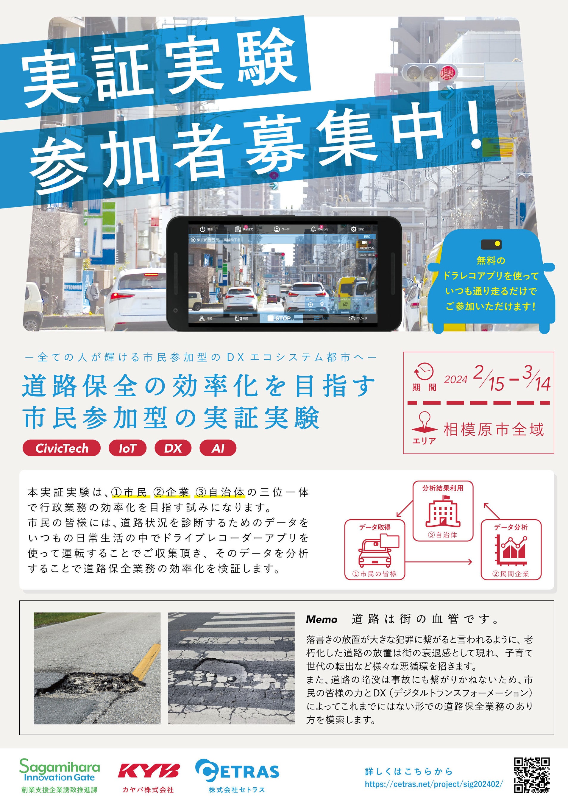 ・実証名:「相模原市における市民参加型プロジェクト 道路安全モニター」