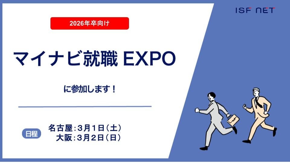 株式会社アイエスエフネット(本社:東京都港区/代表取締役:渡邉幸義、以下アイエスエフネット)は、2025年3月1日(土)に名古屋、3月2日(日)に大阪で開催される2026年卒業の学生向け「マイナビ就職EXPO」に参加いたします。