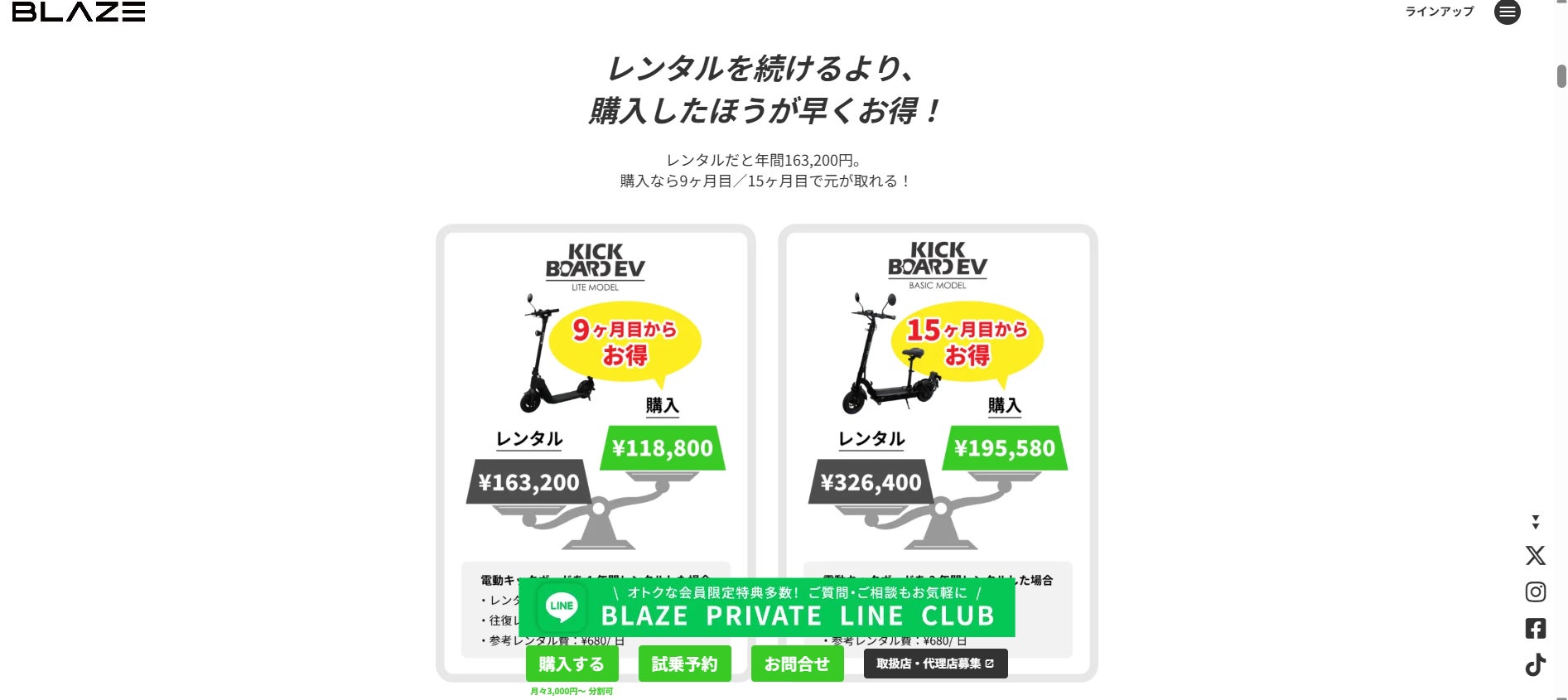 リニューアル後の「キックボードEV」のサイトはこちら→https://lp.blaze-inc.co.jp/kickboardev