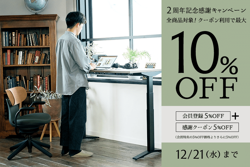 また、同期間中は、「KOKUYO Workstyle Shop」のオープン2周年を記念して、5%OFFクーポンを配布します。無料会員特典(いつでも5%OFF)と合わせ、全品10%OFF(※)で購入することが可能です。