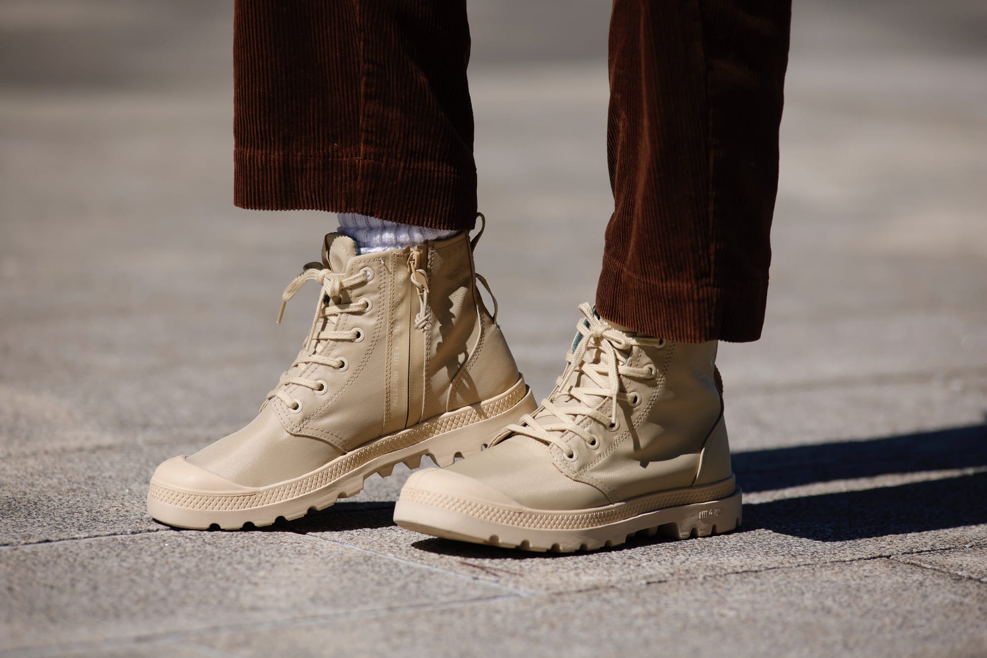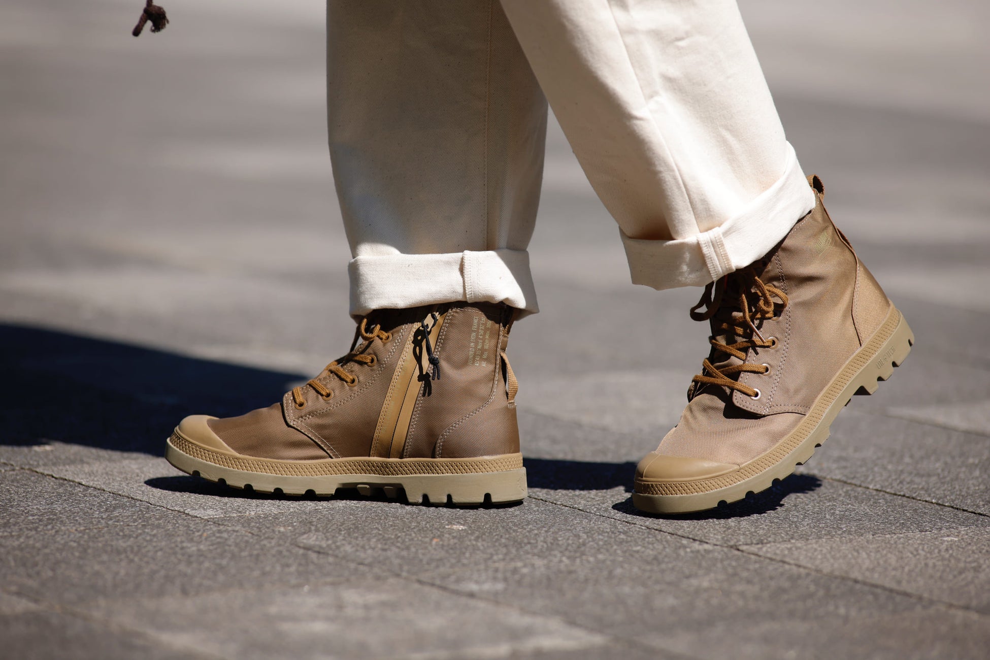 PALLADIUM(パラディウム)は、1928年に航空機専用のタイヤメーカーとして創業。耐久性に優れた独自製法を開発し、短期間で世界的規模のシェアを獲得しました。第二次世界大戦後の需要減少に伴い、ラバーソールブーツの製造をスタート。砂漠地帯で使用する軍靴というリクエストを受けて、ブランドのアイコン「PAMPA(パンパ)」シリーズが誕生。70年の歴史を経て、オーセンティック感と特徴的なソールに加え、最先端のデザインを合わせ持つフランス発ブーツブランドとして、世界80ヶ国で展開しています。