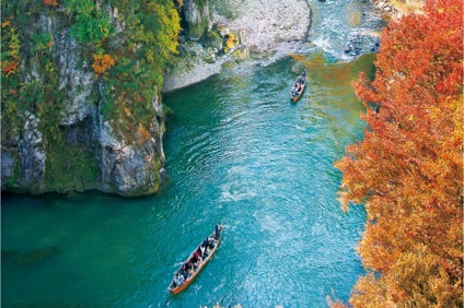 2.秋色に染まる渓谷を舟で進む「紅葉ライン下り」