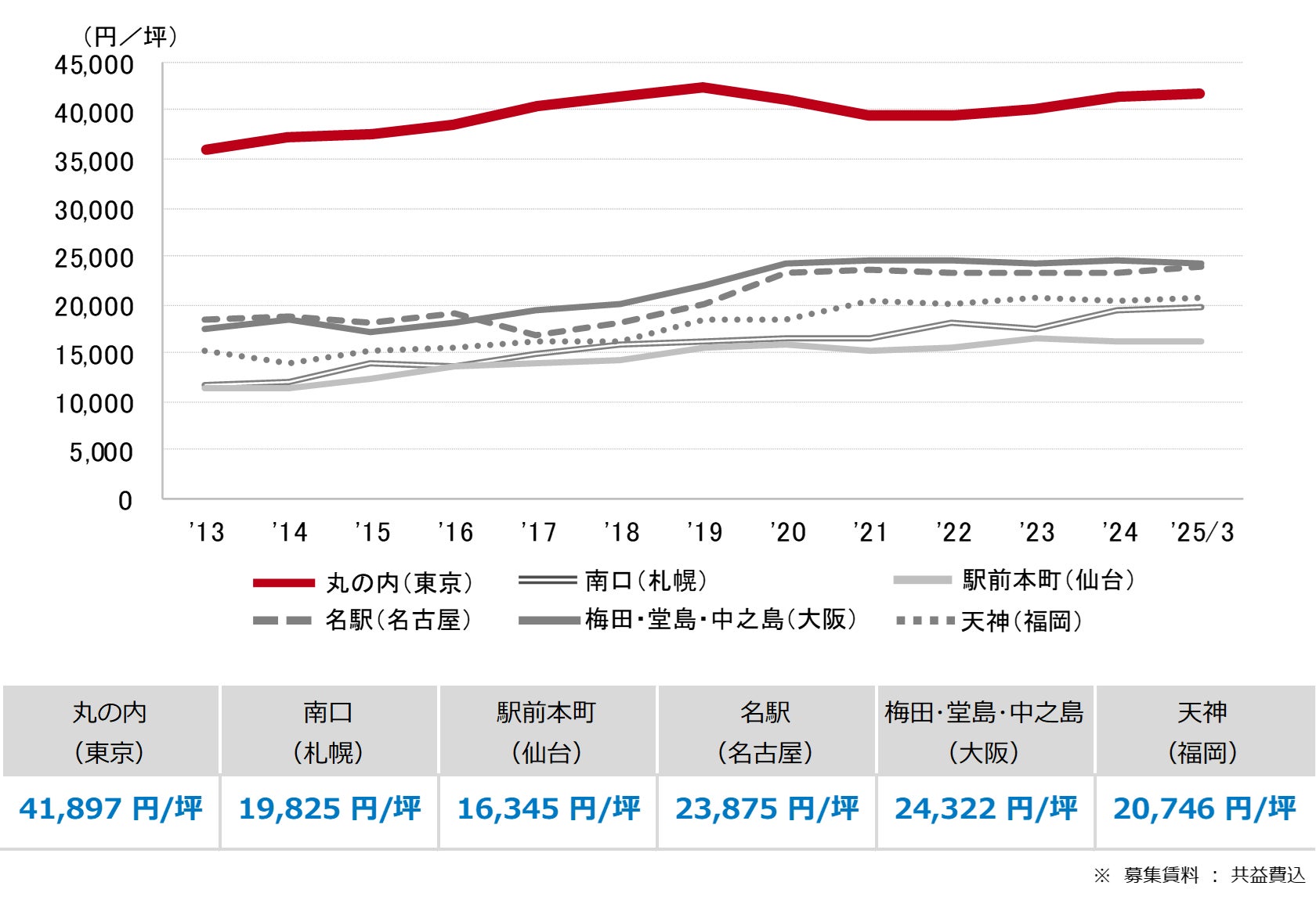 <募集賃料の推移(6大都市 大規模ビル・主要駅前地区)>