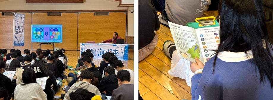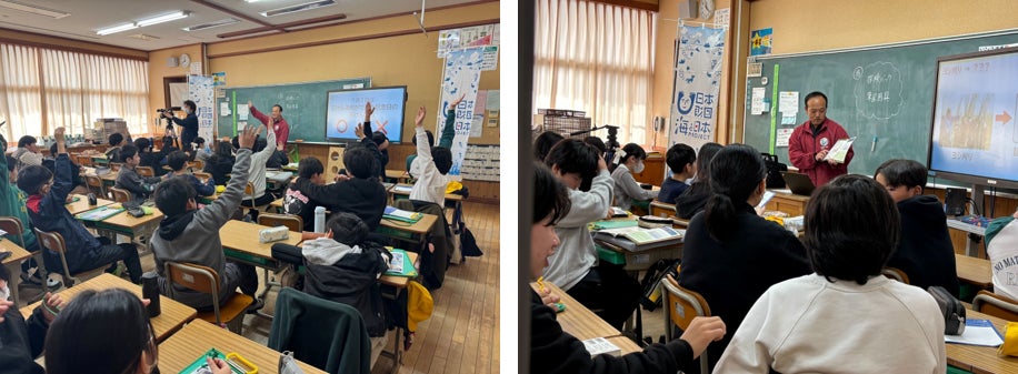 一般社団法人海と日本プロジェクトin滋賀県は、広大で多様な生態系を持つびわ湖が、水質や漁業、温暖化など海と同じく様々な問題を抱えているという「びわ湖の問題」を学び、自ら考えることで小学生が世界の海洋問題へと視野を広げるきっかけを作ることを目的に、新たに制作した学習用小冊子『良くなってる?悪くなってる?びわ湖の今を知ろう!』を用いて、MLGsについてやびわ湖の今の環境について学ぶ「びわ湖環境学習の特別授業」を2026年2月24日に実施しました。