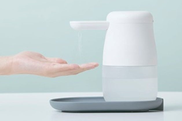 手をかざすだけで自動でアルコール消毒液が噴射される自動手指消毒器です。ポンプ式に比べ、直接機械に手を触れずに消毒ができるため、衛生的に使用できます。単3形アルカリ乾電池4本で動くので、コンセントのない場所でも使用可能です。さまざまな空間に馴染むシンプルでコンパクトなデザインは、ご家庭はもちろん、オフィスや病院・ホテルなどでの使用にも最適です。また、本体のボトルは透明のため、消毒液の残量をひと目で確認できます。