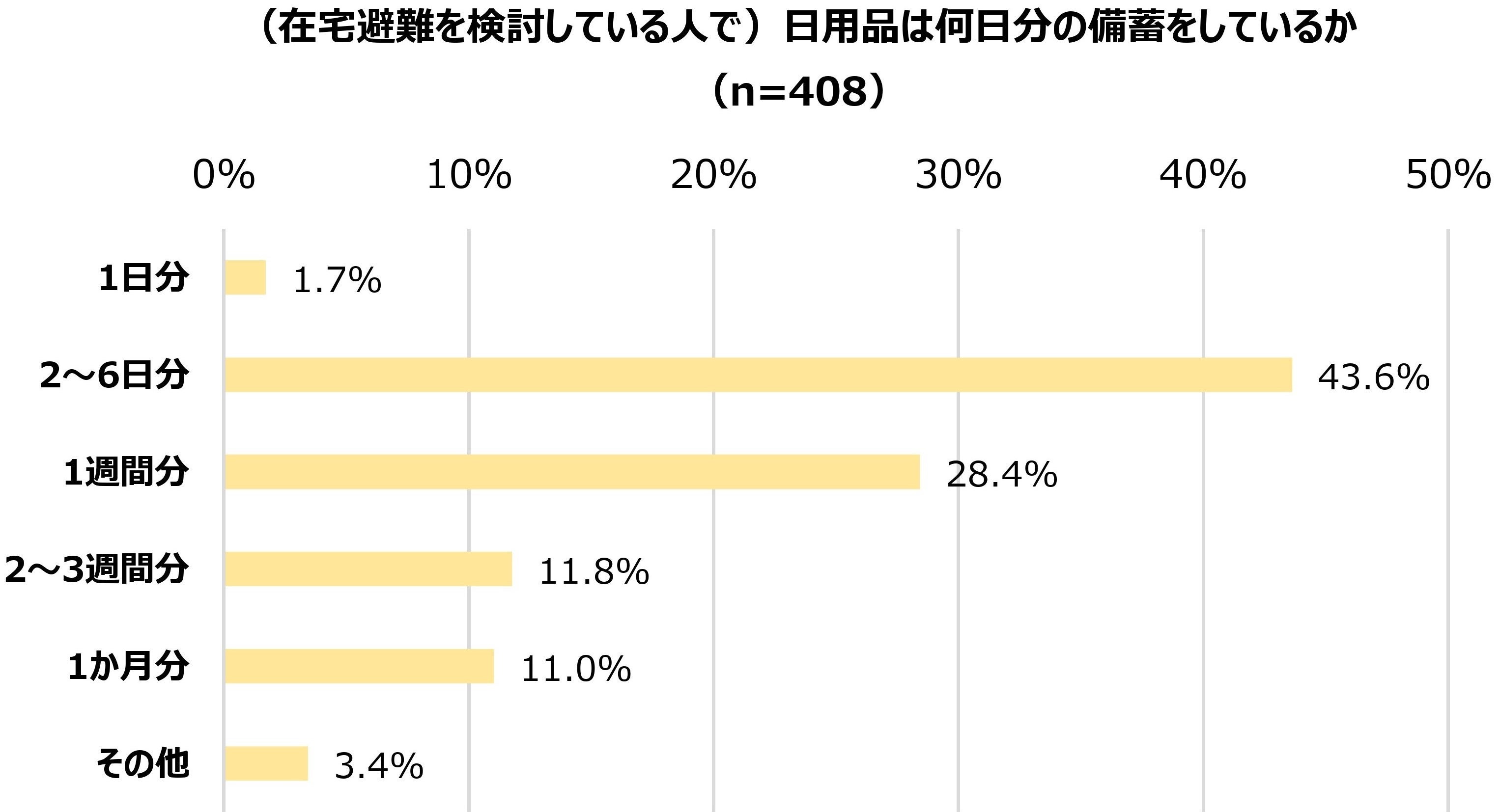 ・また、在宅避難を検討している人の備蓄量も全体と同じような傾向に。