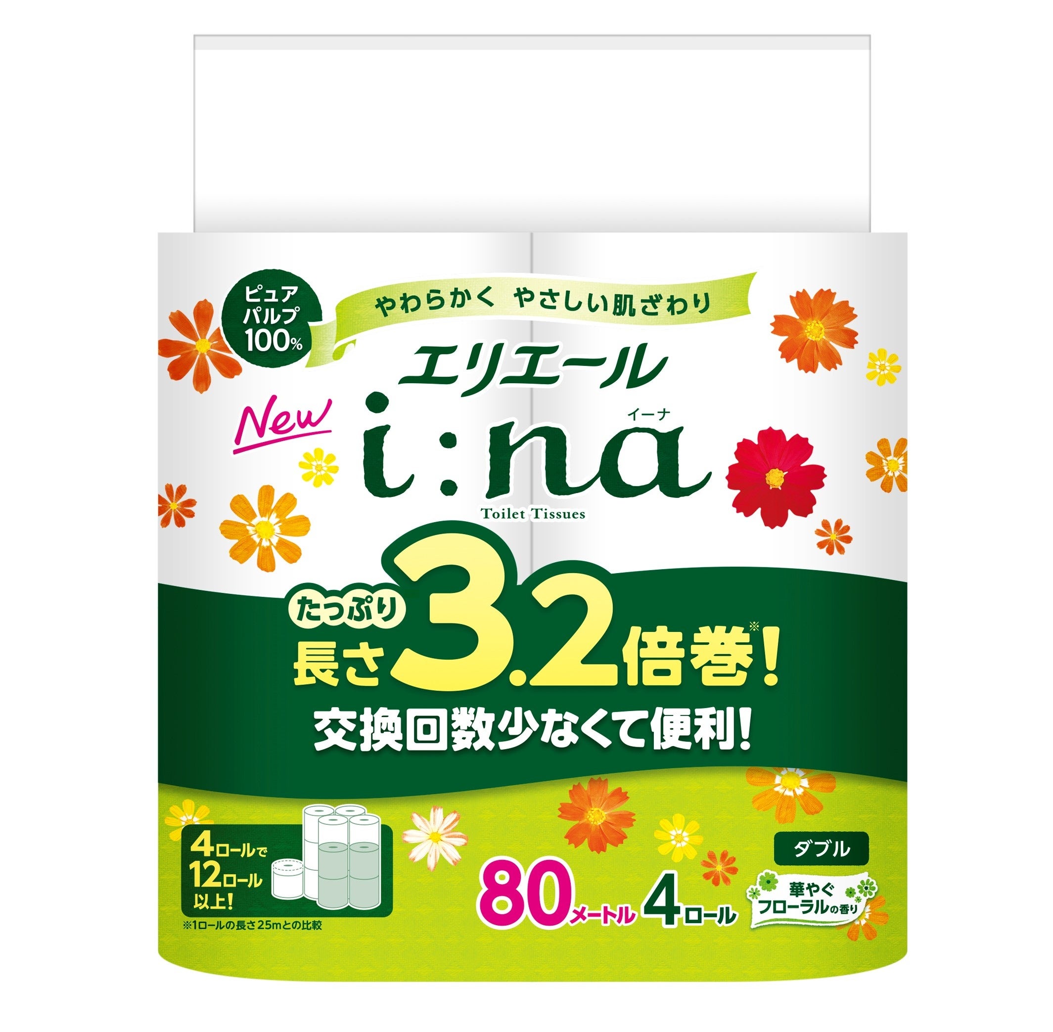 ■トイレットペーパー:「エリエール i:na(イーナ)トイレットティシュー 3.2倍巻」
