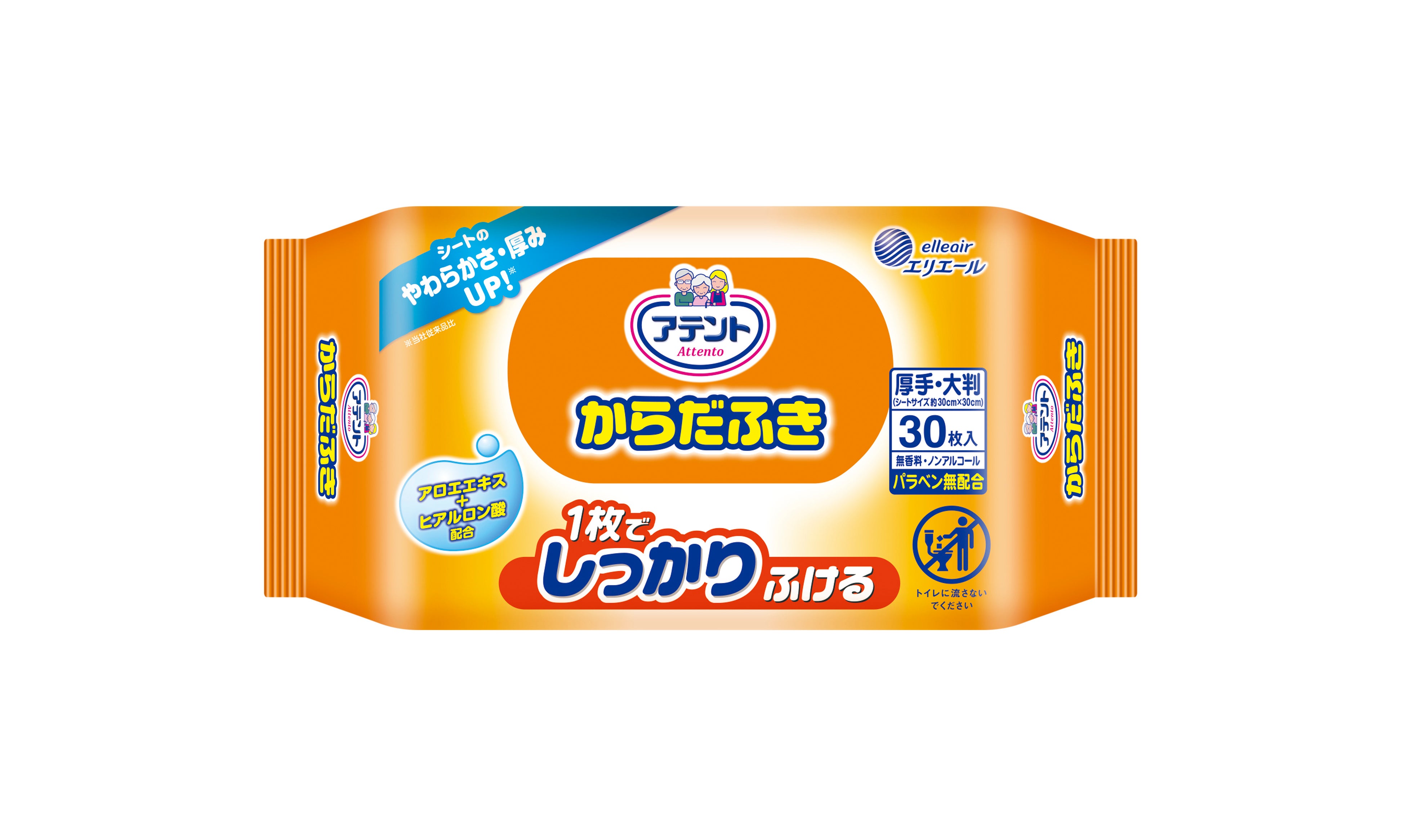 ・ 水が使えない状況でも、1枚でしっかりからだを拭くことができます。