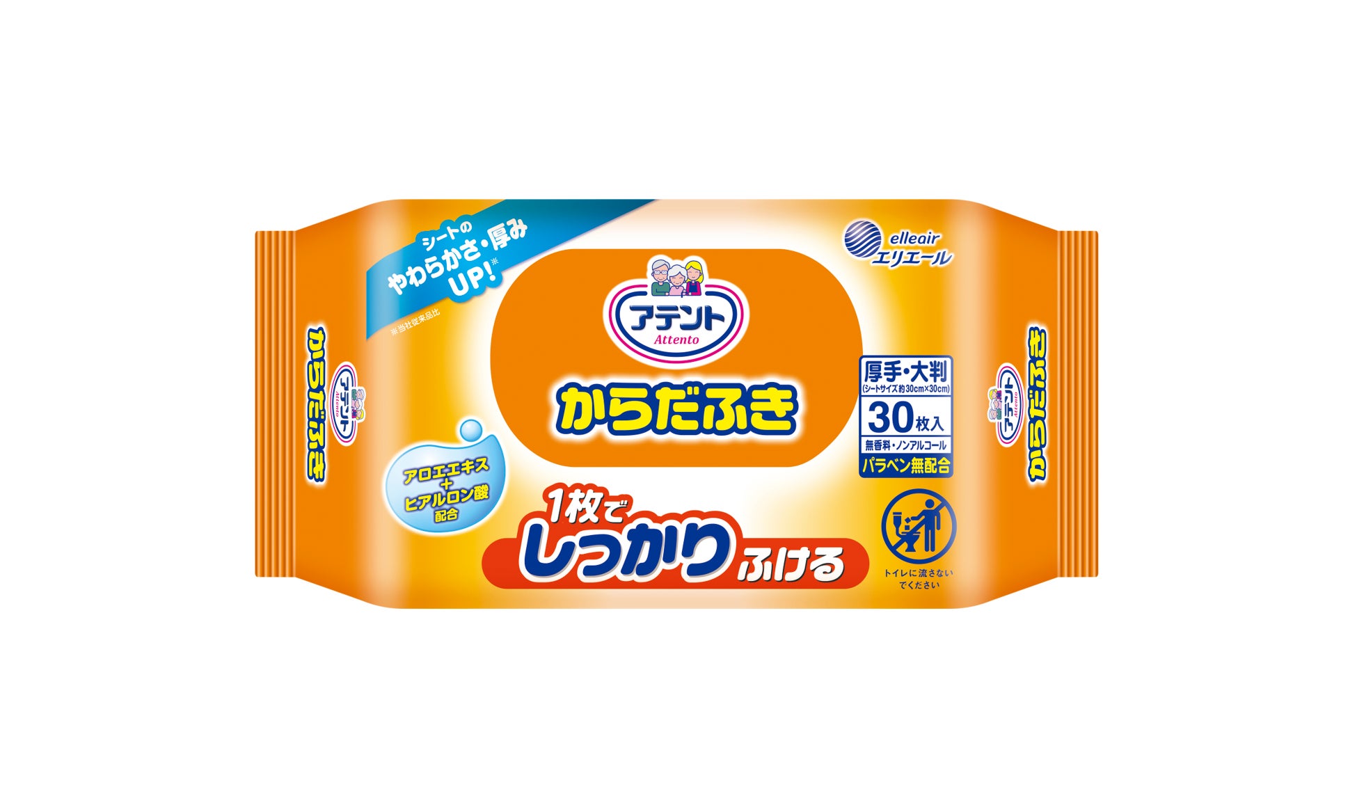 災害などでシャワーを浴びることができないときに役立つ、厚手・大判のからだふき。