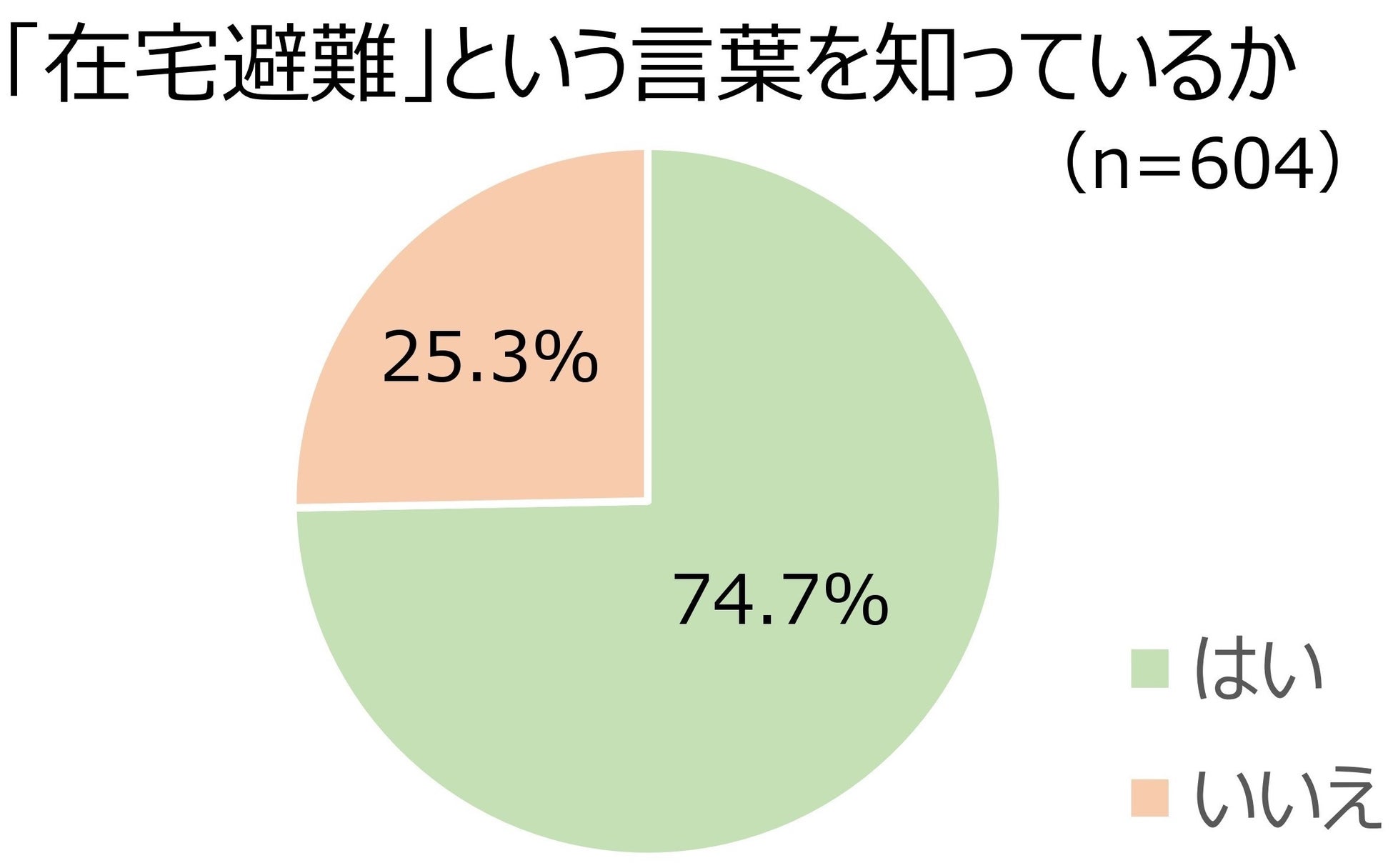 ・「在宅避難」という言葉を知っている人は全体の約7割(74.7%)。その中の約9割(90.5%)は、災害時には在宅避難を検討していました。
