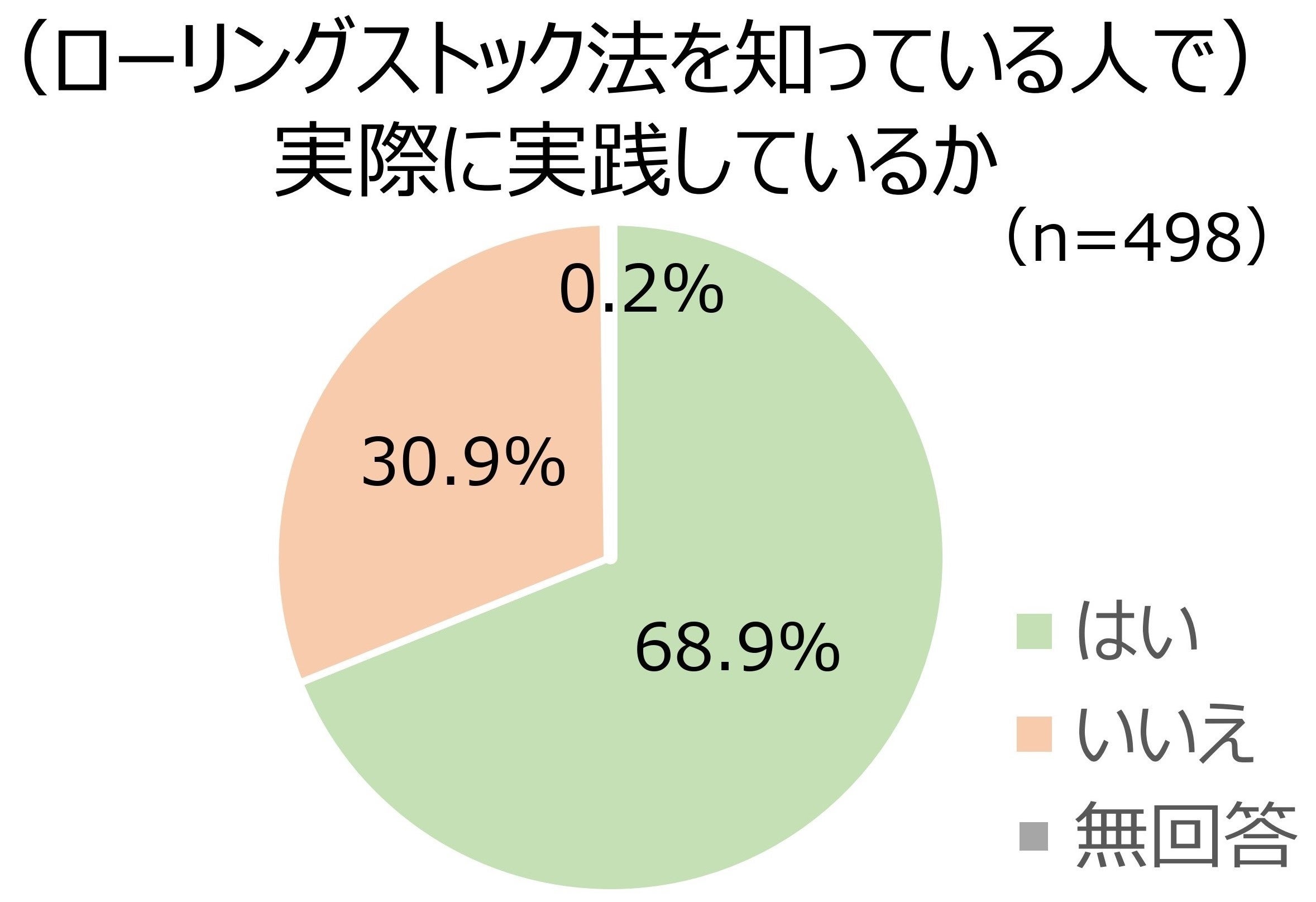 ・「ローリングストック法」という言葉を知っている人は全体の約8割(82.5%)。その中の約7割(68.9%)は、日常生活においてローリングストック法を実践していました。