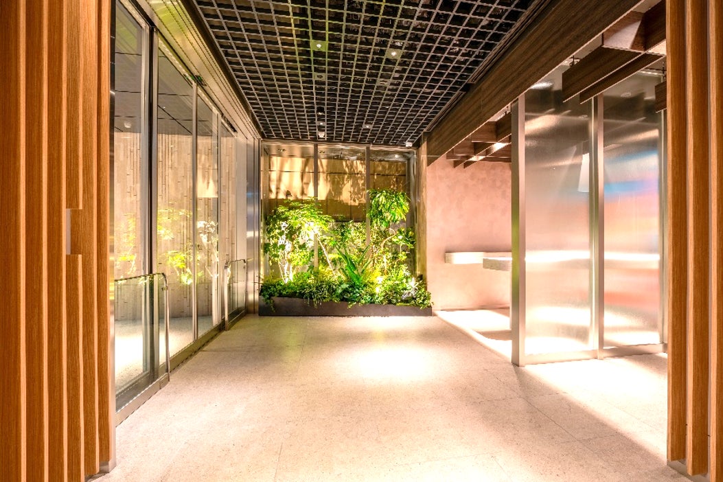 屋内外のグリーン、ほのかに香るアロマにより、自然のぬくもりを感じられるバイオフィリック