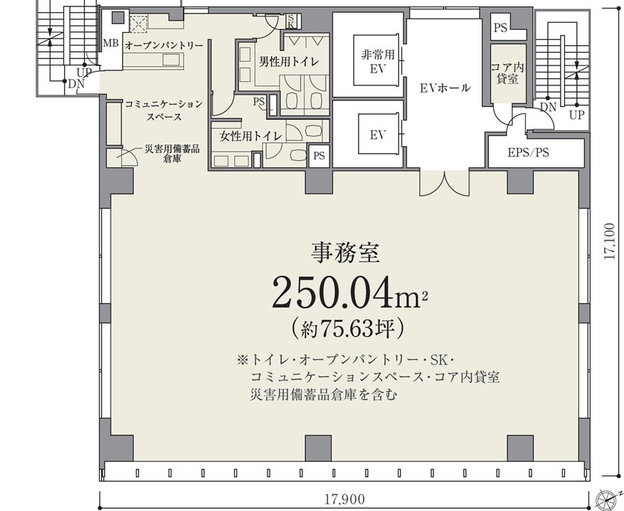 ・天井高2,800mmの整形無柱空間によってフレキシブルなプランニングを可能にしています。